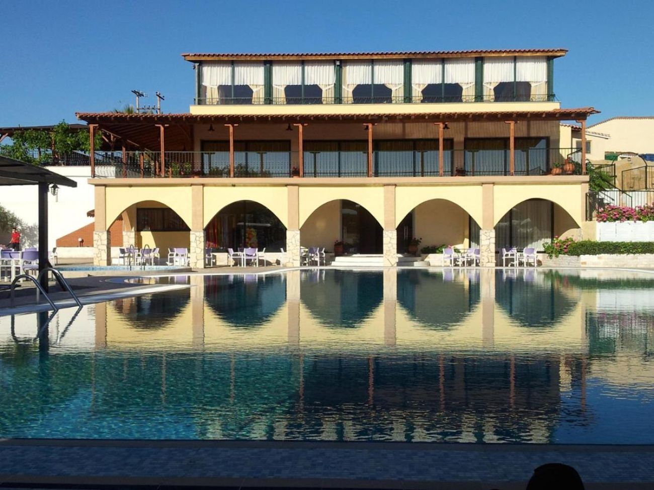 Хотелът се намира на п-в Ситония, на 1,5 км. от Метаморфoси, на 90 км. от летището в Солун, на брега на морето. Частично реновиран през 2016 г.