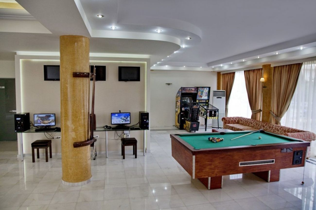 На територията: 2 отделни басейна с отделен детски басейн и бар до тях. Основен ресторант и бар. Детска площадка, билярд, 2 детски площади и електронни игри на разположение. Стаите разполагат с тераса, климатик, телевизия и кърпи.