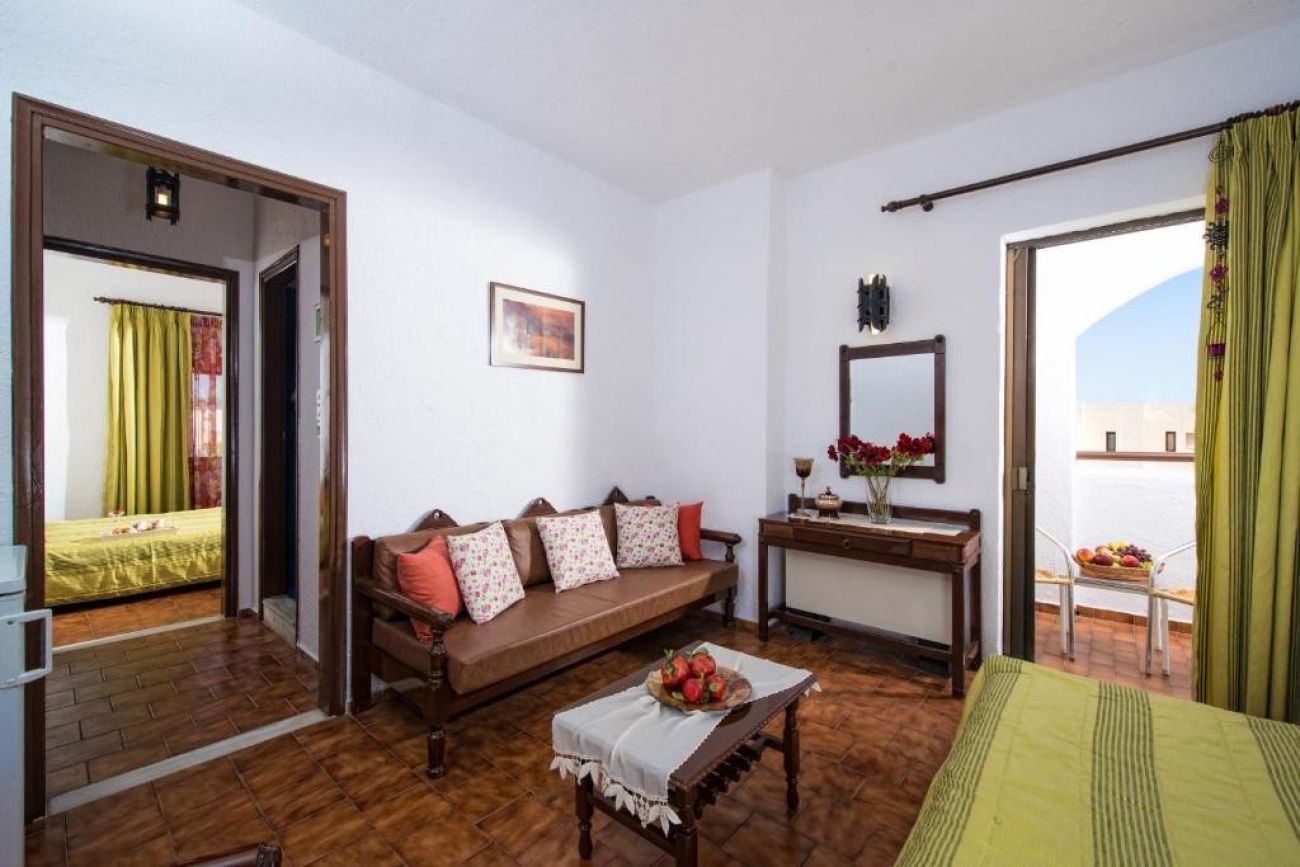 Всички стаи и апартаменти са с каменни подове и разполагат с климатик и мини хладилник. Те се отварят към балкон с изглед към околностите. Някои видове помещения за настаняване разполагат и с кът за сядане.
