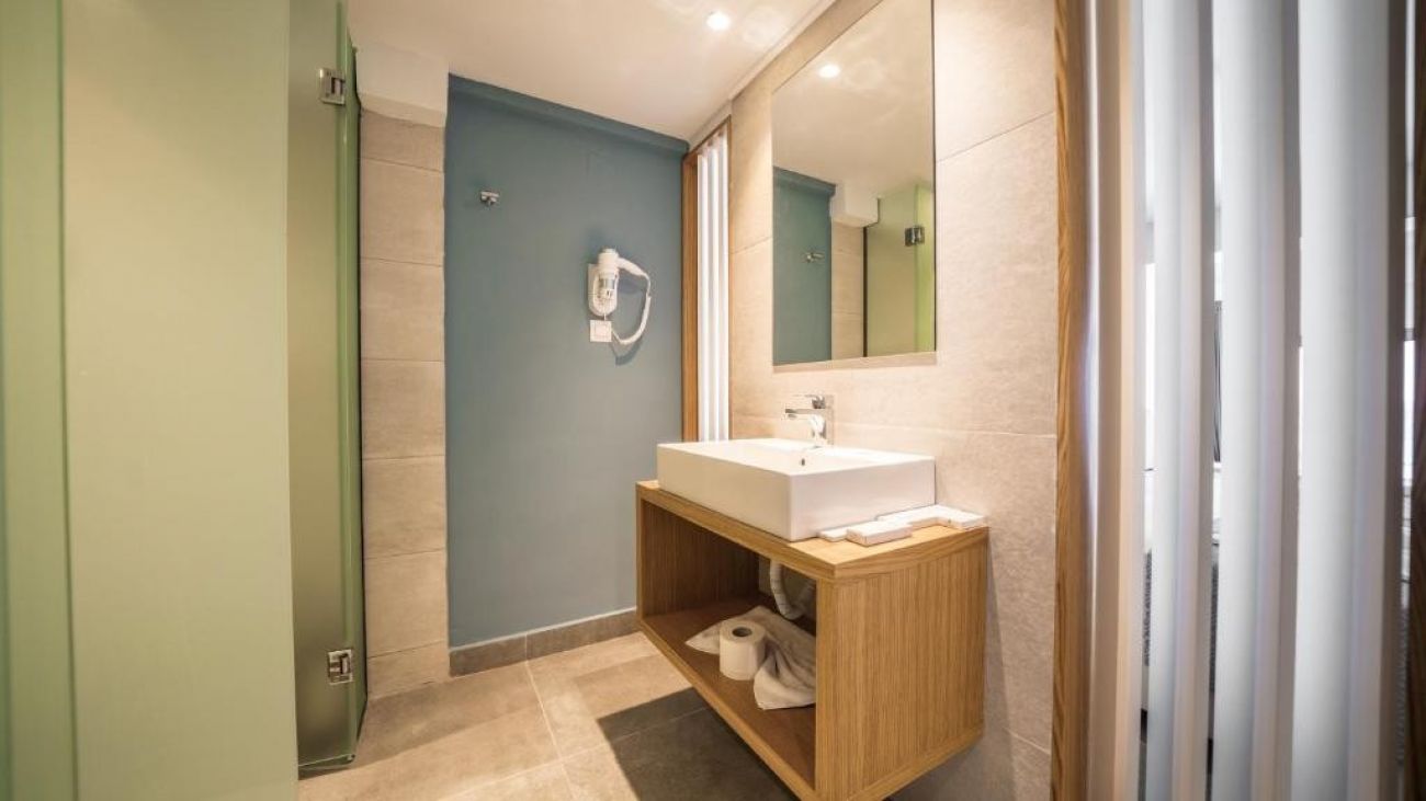 В стаите: Стаята разполага с телевизор, индивидуален климатик, сейф, душ или вана, сешоар, телефон, хладилник и балкон или тераса.