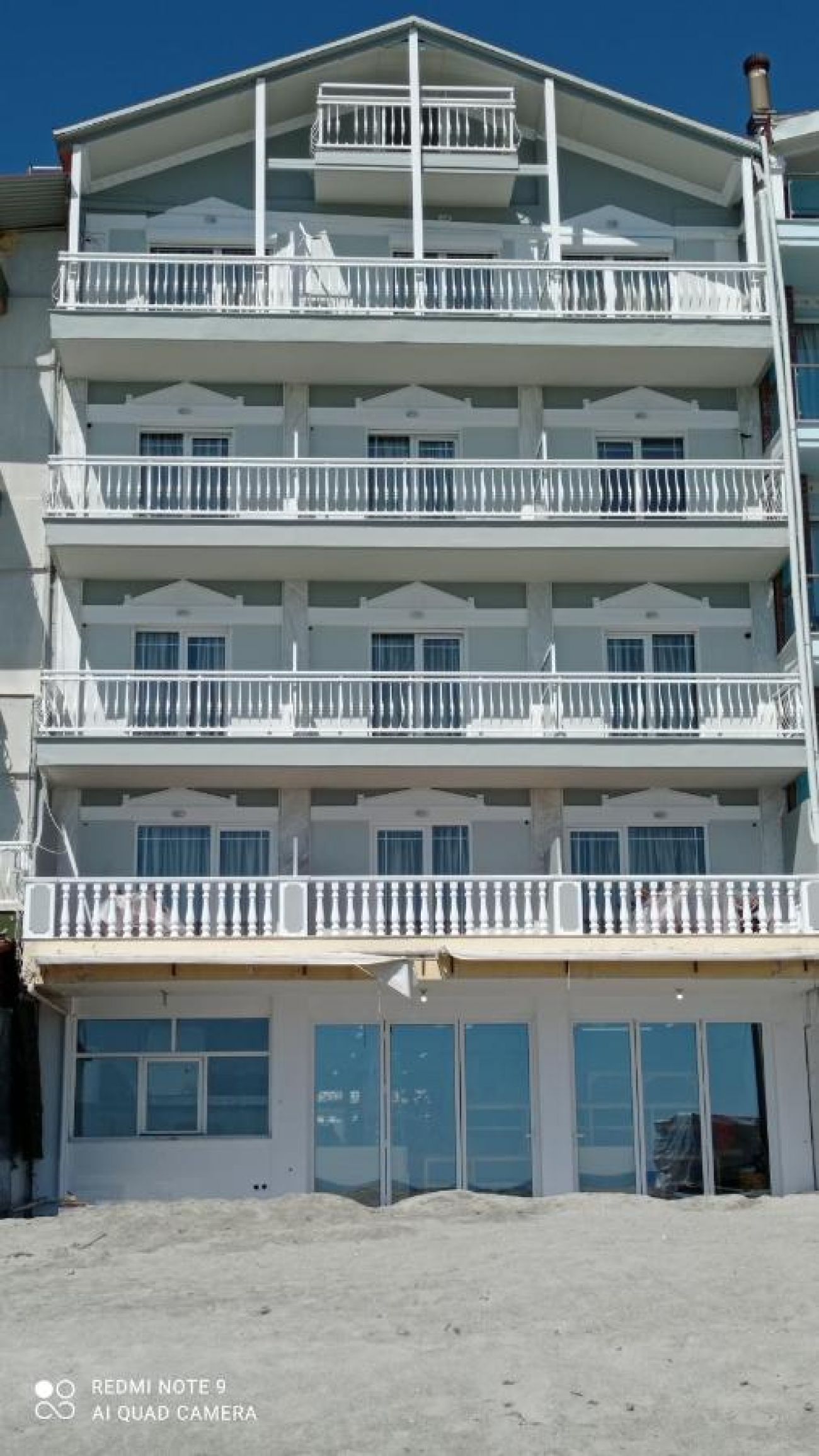 Собствен пясъчен плаж пред хотела. Безплатни чадъри и шезлонги срещу консумация от плажния бар.