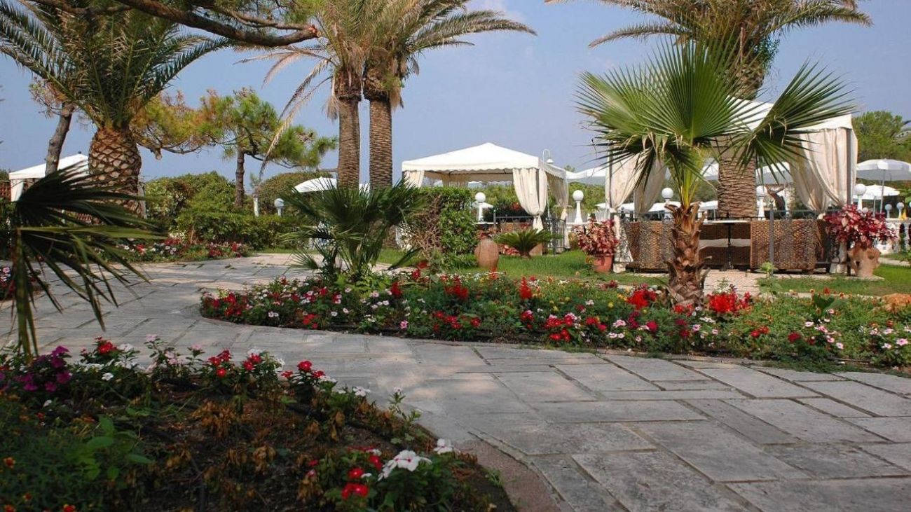 Domizia Palace 4* се намира в италианския курорт Бая Домиция, на първа линия до плажа на залива Гаета, заобиколен от борова гора. Комплексът е разположен сред красиви градини с палми, средиземноморски кипариси и диви цветя, даващи усещането за спокойствие и релакс.