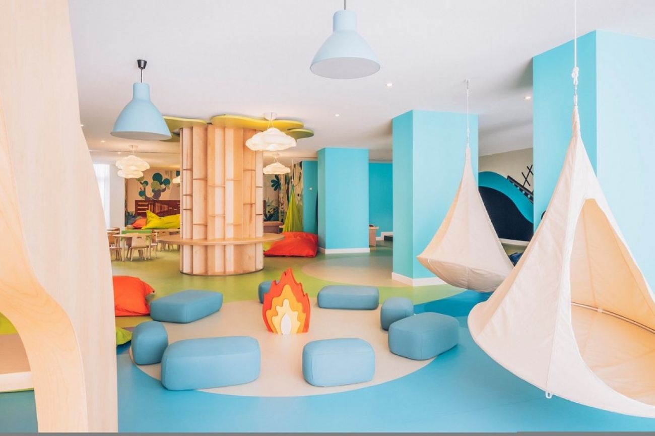 Разположен сред обширна зелена територия, с множество детски площадки за всички възрасти, различни ресторанти и