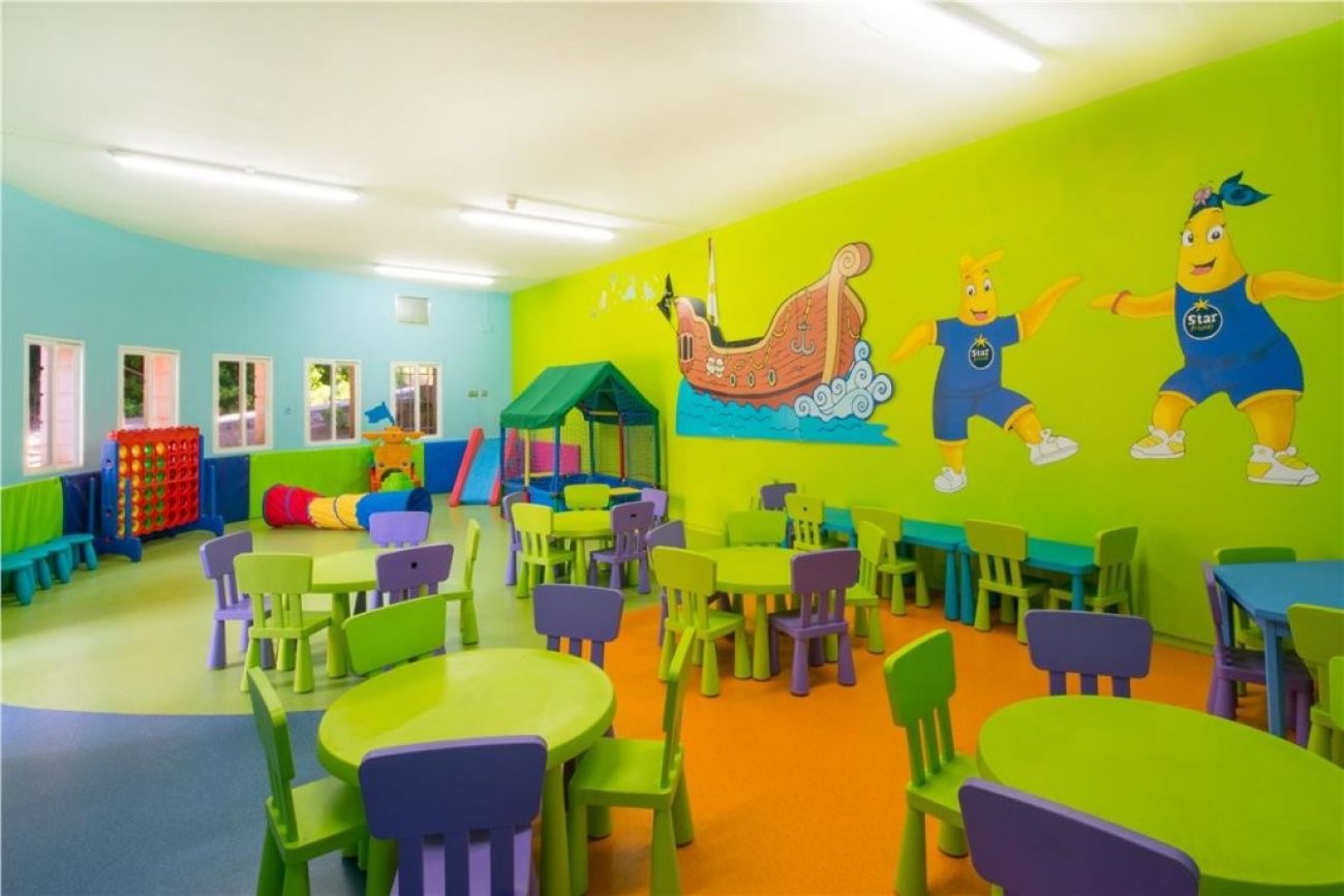 Разположен сред обширна зелена територия, с множество детски площадки за всички възрасти, различни ресторанти и