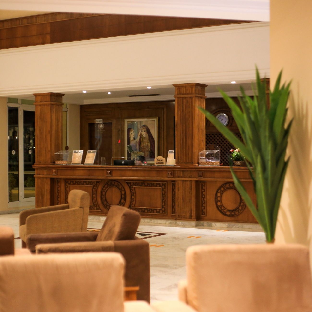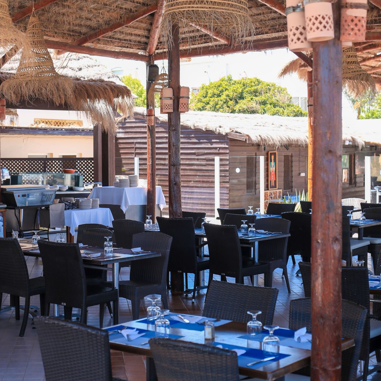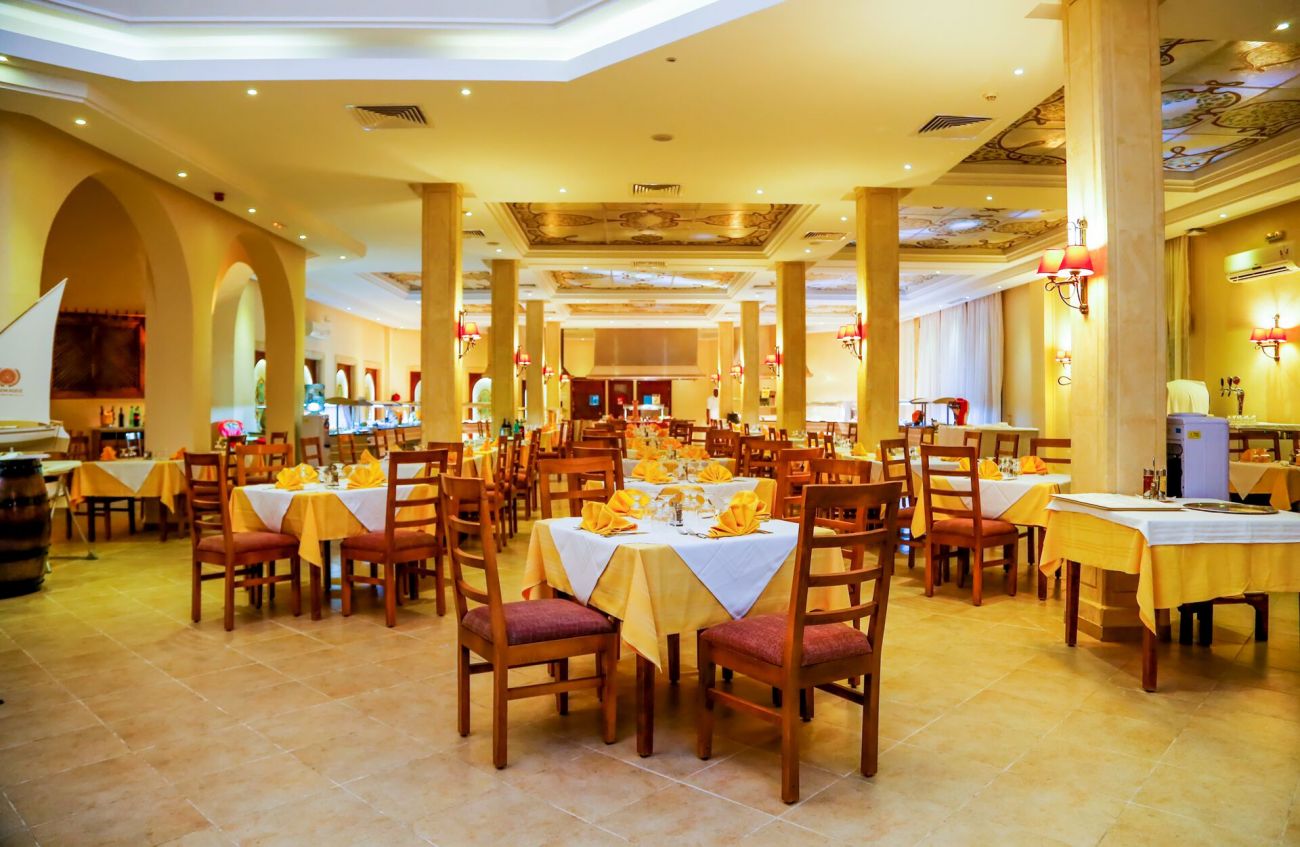 Основен ресторант Zeus, лоби бар Horus, бар на плажа, барбекю ресторант Sindbad (късна закуска, обяд, дневни закуски), мавританско кафене Isis Cafe Maure (наргиле-срещу заплащане), открит басейн, закрит басейн (отворен през април и октомври), СПА център, денонощна рецепция, обменно бюро, магазин за сувенири, 3 тенис корта.