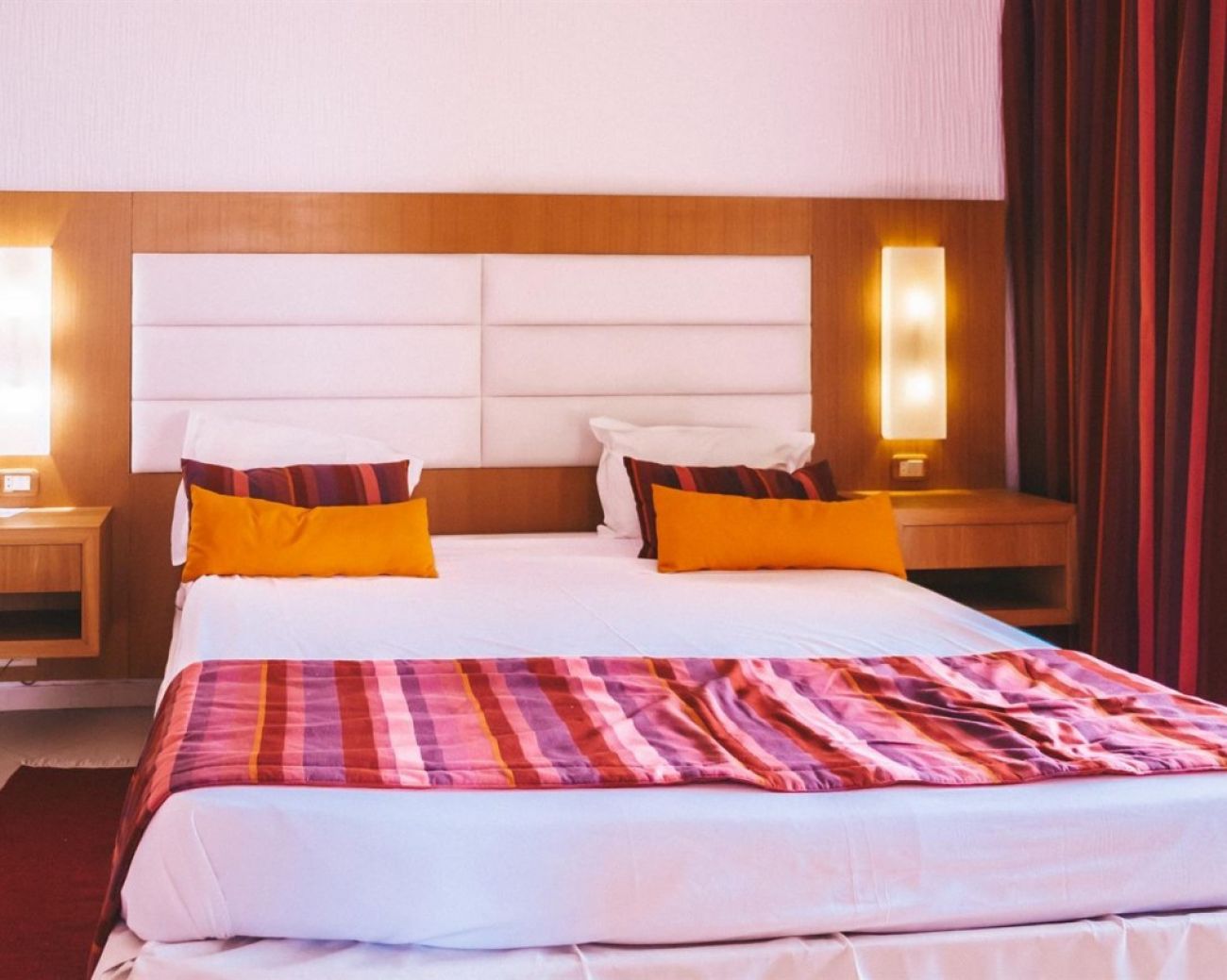 В стаите: Хотелът разполага с общо 214 стаи, разположени в триетажна сграда, от които Standard Room (30-34 m2) и Sea View Room (30-34 m2). Всички стаи са оборудвани с климатик, телевизор, телефон, баня с душ, сешоар, сейф (с депозит). Почистване на стаите и смяна на кърпите - всеки ден, смяна на спално бельо – 3 пъти в седмицата.