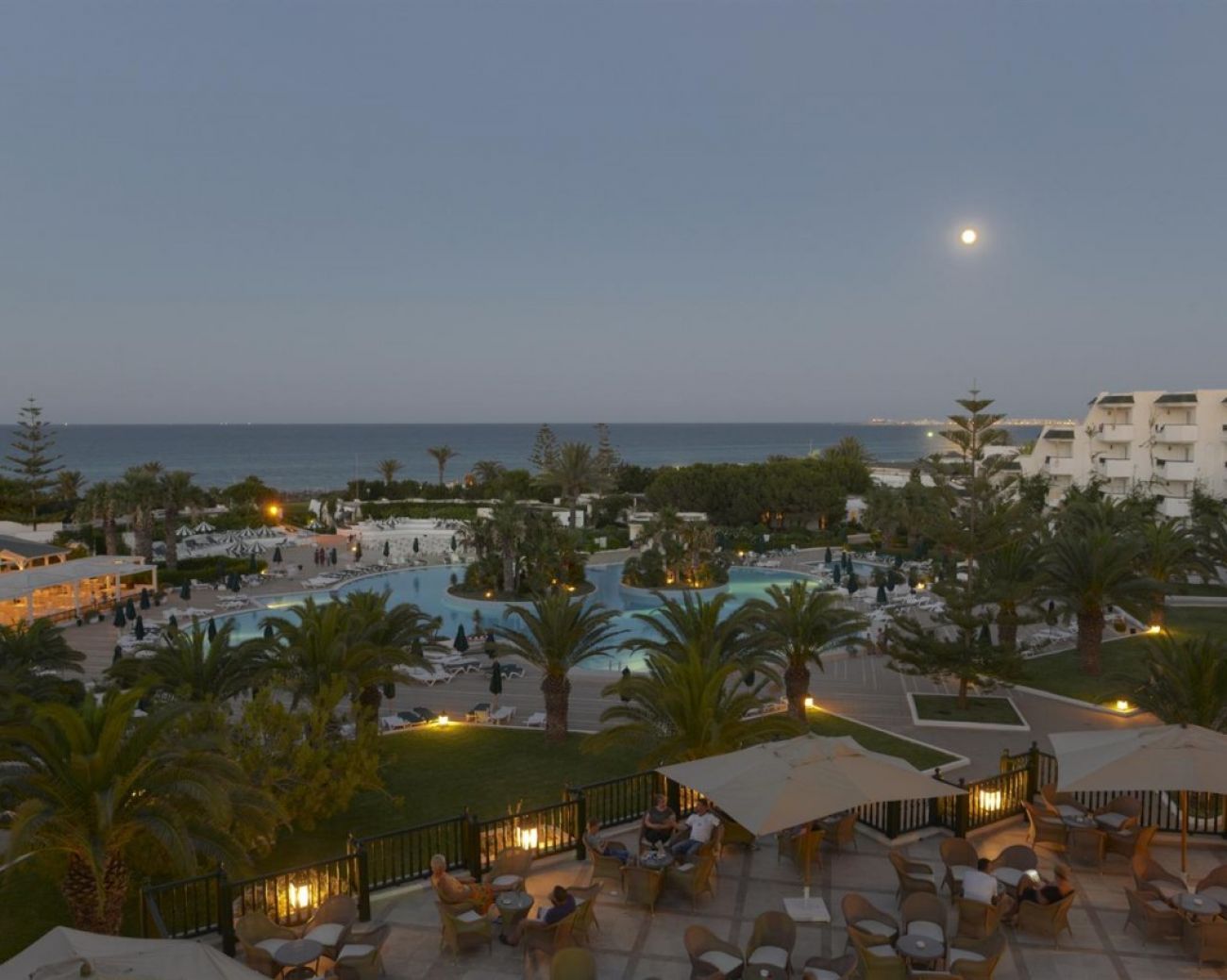 На територията на хотела: Основен ресторант Meridian, снак бар, няколко а ла карт ресторанта ( едно безплатно посещение по време на престоя след предварителна заявка) - а ла карт ресторант със средиземноморска кухня (платен), а ла карт ресторант Sofra с тунизийска кухня (платен), а ла карт ресторант El Pescado с морска кухня (платен), лоби бар, бар басейн, диско бар, мавританско кафене (срещу заплащане), анимация, аеробика и водна аеробика, плажен волейбол, тенис на маса, дартс, боча, външен басейн на две нива с водни пързалки, вътрешен басейн с прясна вода (затворен през Юли и Август), 24 часова рецепция, сувенирен магазин, конферентна зала.