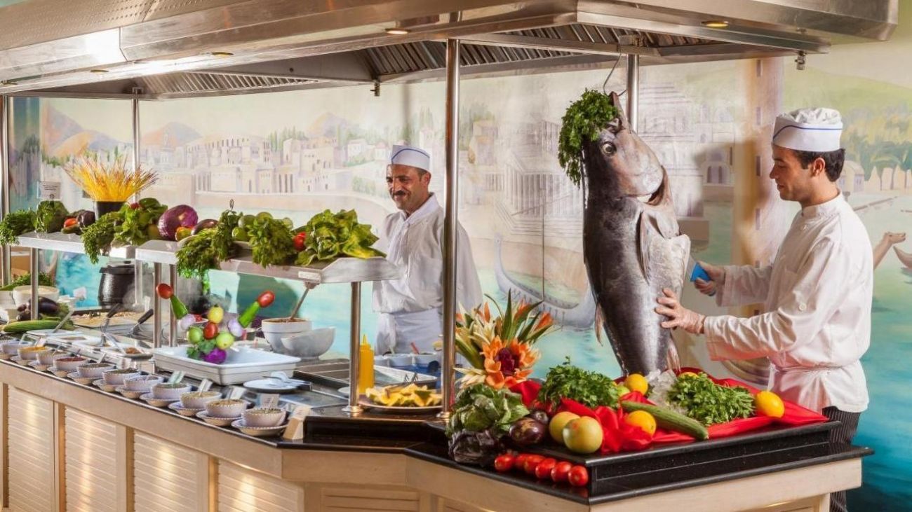 - Барове край басейна, плажа, в лобито на хотела, в дискотеката или пианобара с работно време от 10:00 ч. до 24:00 ч.