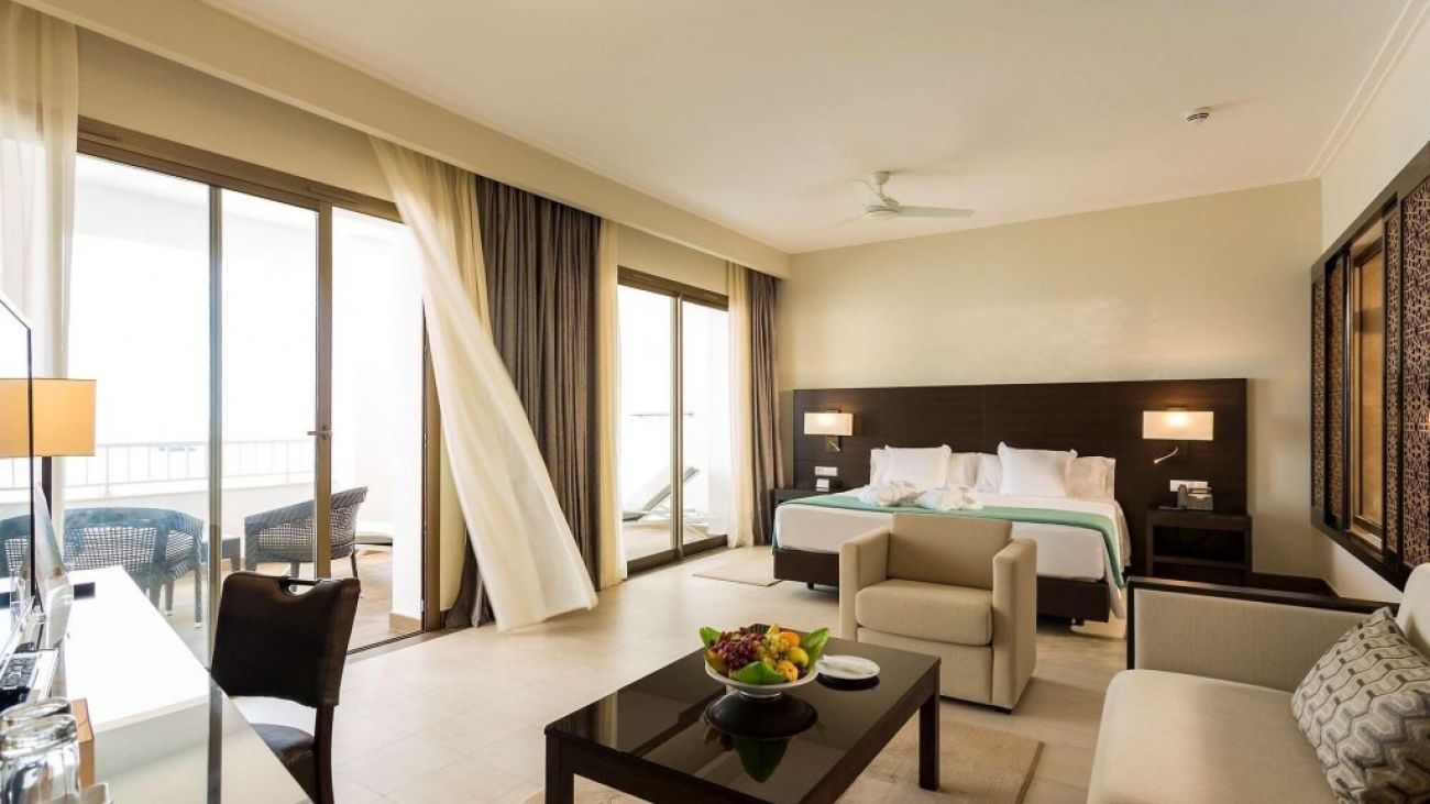 В стаите: Хотелът разполага с общо 452 стаи и апартаменти, разположени в основна сграда - Standard Room Garden View (46 кв.м), Sea View Room (41 кв.м), Family Room (65-75 кв.м, спалня и отделна всекидневна с разтегателен диван), Suite Junior Sea View (65-75 кв.м, кът за сядане с разтегателен диван), Premium Suite Sea View (60-65 кв.м, отделна всекидневна).