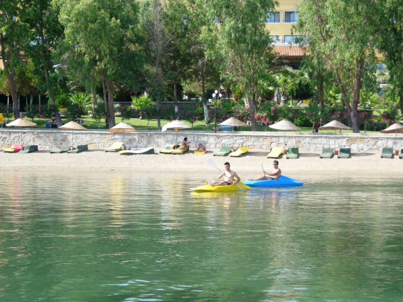 Плаж – собствен, пясъчно-чакълест. Чадъри и шезлонги на плажа и при басейна – безплатно. Кърпи за плажа с депозит.