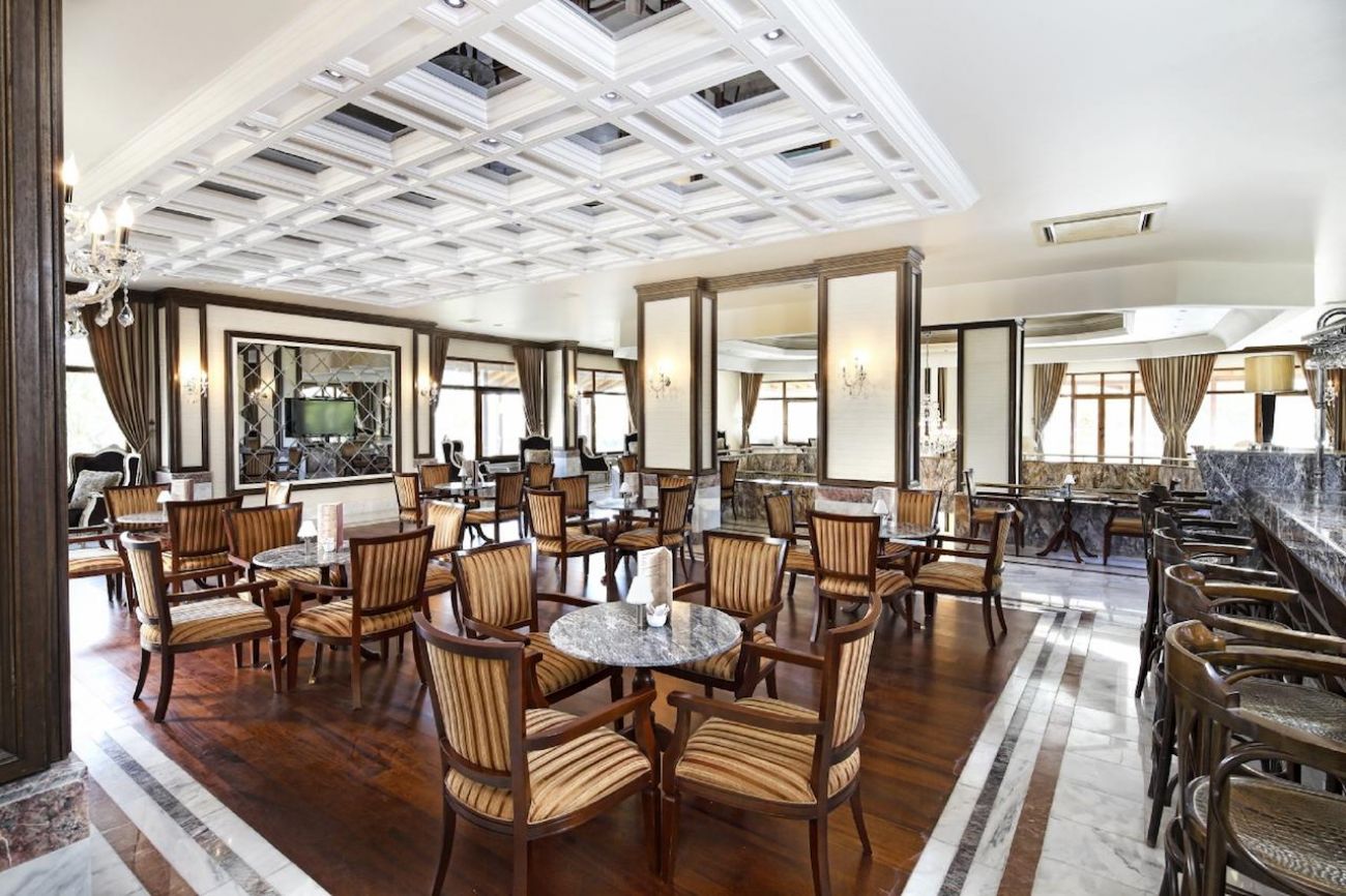 Основен ресторант, 3 бара, 1 открит, 1 закрит и 1 детски басейни, дискотека, водна пързалка, амфитеатър, магазини, SPA център, 2 конферентни зали, паркинг. За децата: Детски басейн, водна пързалка, детска площадка, Мини-клуб (4-12г). Безплатни услуги: Фитнес, плажен волейбол, баскетбол, анимационна програма, интернет (в лоби). Платени услуги: СПА център, сауна, турска баня, джакузи, масаж, пилинг, фризьор, магазини, химическо чистене, обмяна на валута, билярд, игрални автомати, моторни водни спортове.