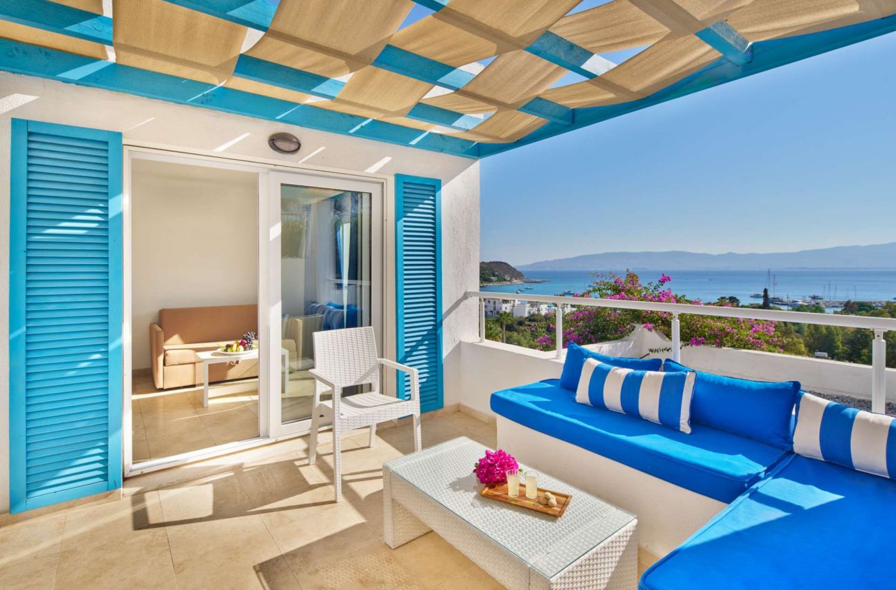 Стаи Land View Room (стандартни стаи в основната сграда с изглед суша - 30 м²), Sea View Room (стандартни стаи в основната сграда с изглед море - 30 м²), Club Room Land View (спалня, хол, баня, с изглед суша - 42 м²), Club Room Sea View (спалня, хол, баня, с изглед море - 42 м²).