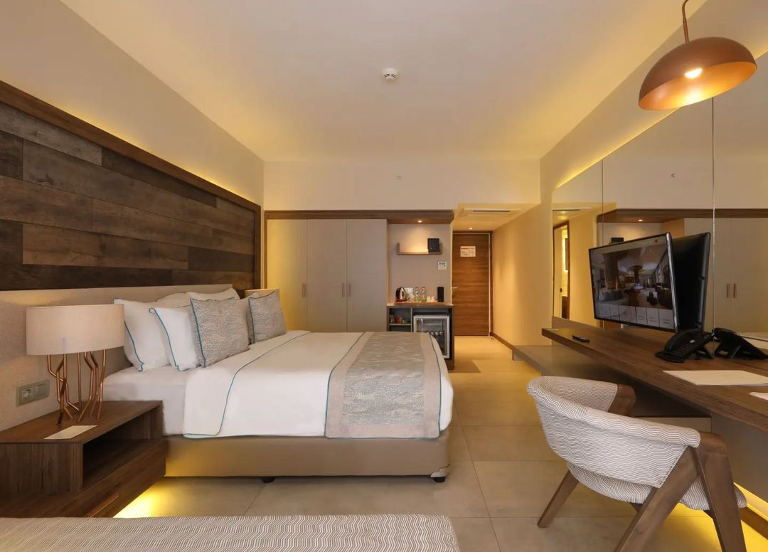 Хотелът разполага със 189 елегантно обзаведени стаи, от които супериор стаи с изглед градина (30-32 кв.м), супериор стаи с частичен изглед море (30-32 м²) и супериор с изглед море (30-32 м²), делукс стаи с изглед море (34 м²) , апартамент с изглед море (две стаи - 50-60 м²), фамилен апартамент с изглед море (три стаи - 63-65 м²), премиум суит тераса с изглед море (55 м²), 1 стая за хора с увреждания.