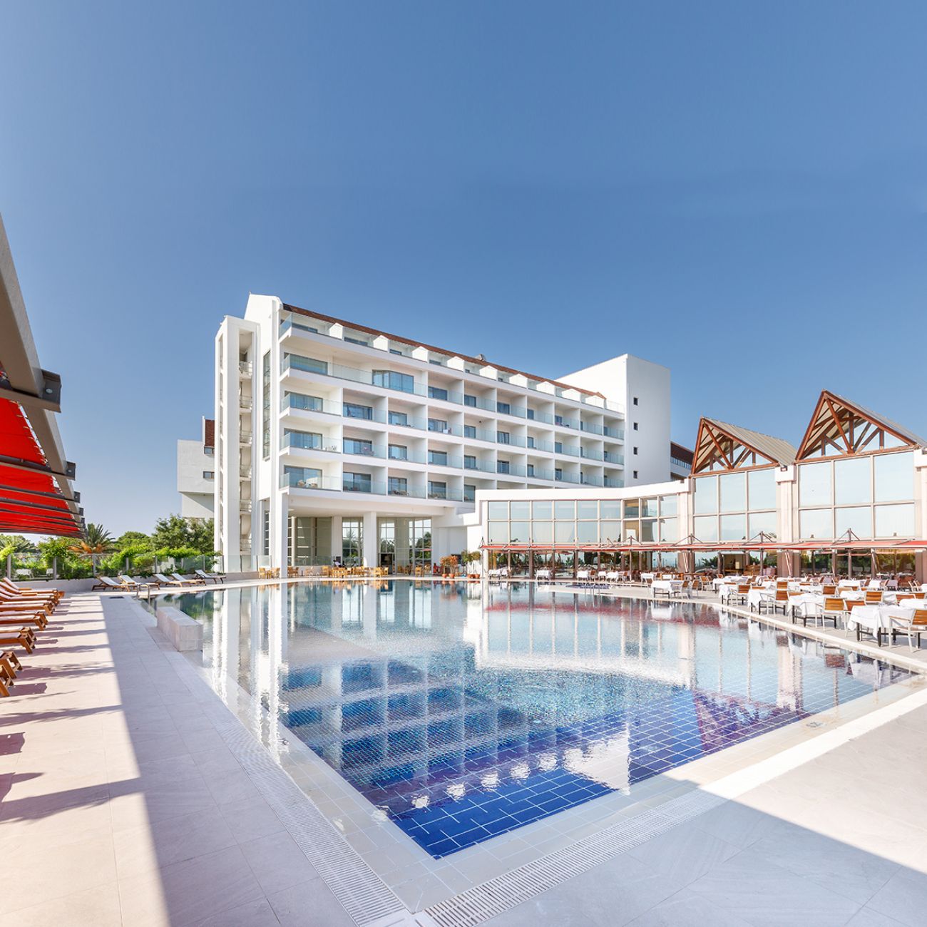Основен ресторант, 5 бара, 2 открити басейна, закрит басейн, термален басейн,СПА център, фитнес център, магазини, паркин За децата: Детски басейн, 2 водни пързалки, детска площадка, мини клуб, анимация. Безплатни услуги:Сауна, турска баня, фитнес, тенис на маса, Wi-Fi(в лоби). Платени услуги: Масаж, фризьор, билярд, пералня, химическо чистене, лекар, детегледачка, моторни и безмоторни водни спортове Плаж: Собствен,малък пясъчно-чакълест и платформа. Чадъри, шезлонги и матраци на плажа и при басейните – безплатно, плажни кърпи - безплатно.