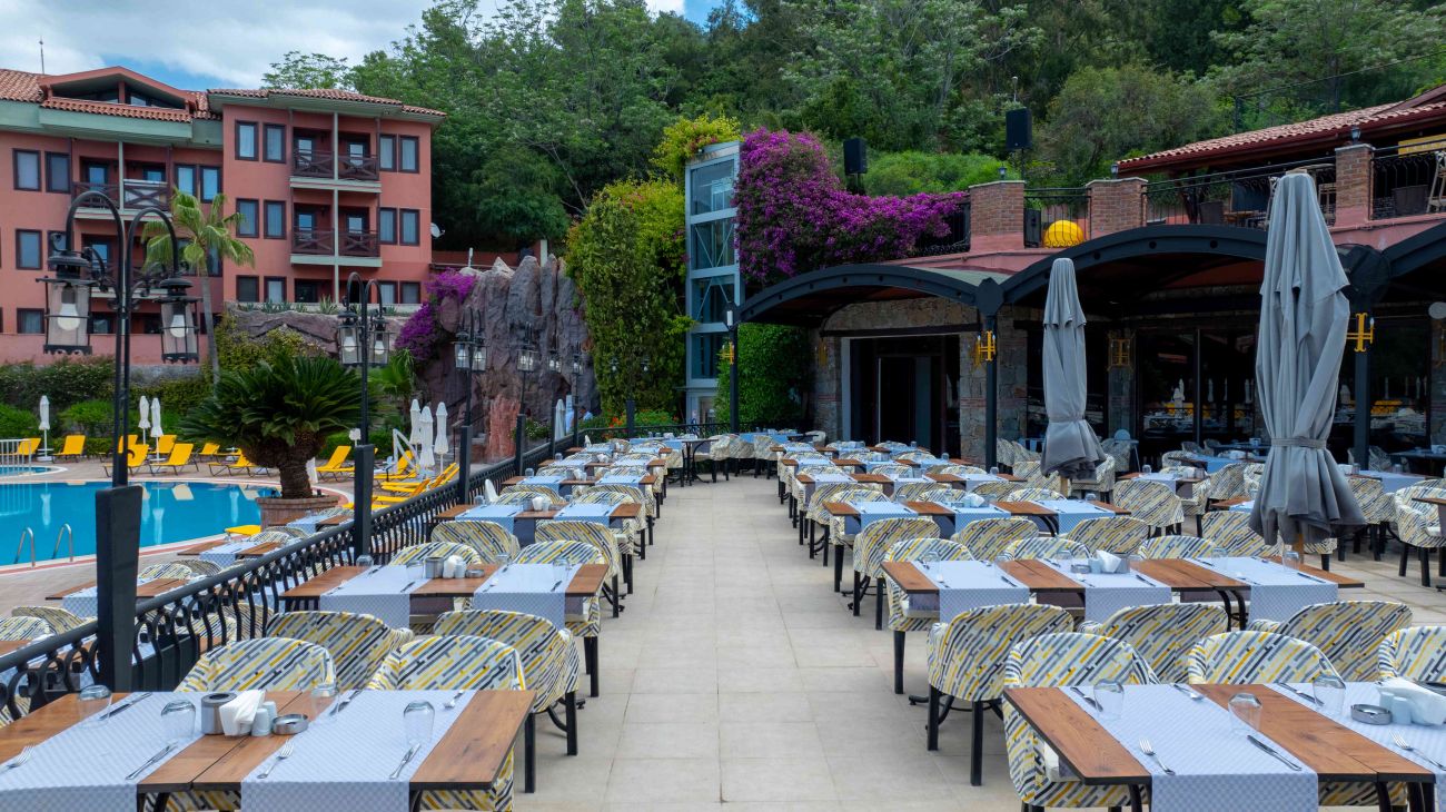 Хотелът разполага с 206 стаи, външен басейн, релакс басейн, детски басейн, вътрешен басейн, основен ресторанта, 3 бара, дискотека, билярд (срещу депозит), дартс, тенис на маса (срещу депозит), тенис на корт (срещу депозит), мини клуб (4-12), анимация. Услуги предлагани в хотела безплатно: турска баня, сауна, фитнес, дискотека. Услуги предлагани в хотела срещу заплащане: масаж, спа център, фризьор, парасайлинг, детегледачка, пералня, осветление за тенис корт, лекар (на повикване). ПЛАЖ: Собствен – пясъчен, на 1 км. от хотела, безплатен шатъл до плажа няколко пъти на ден. Чадъри, шезлонги, матраци на плажа и при басейна – безплатно.