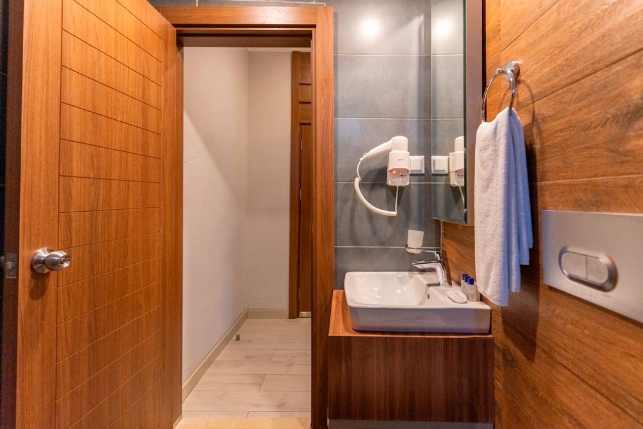 Климатик, сателитна телевизия, телефон, сейф, мини бар, баня с душ, сешоар, балкон. Почистване на стаите - всеки ден, смяна на бельото - 3 пъти седмично.
