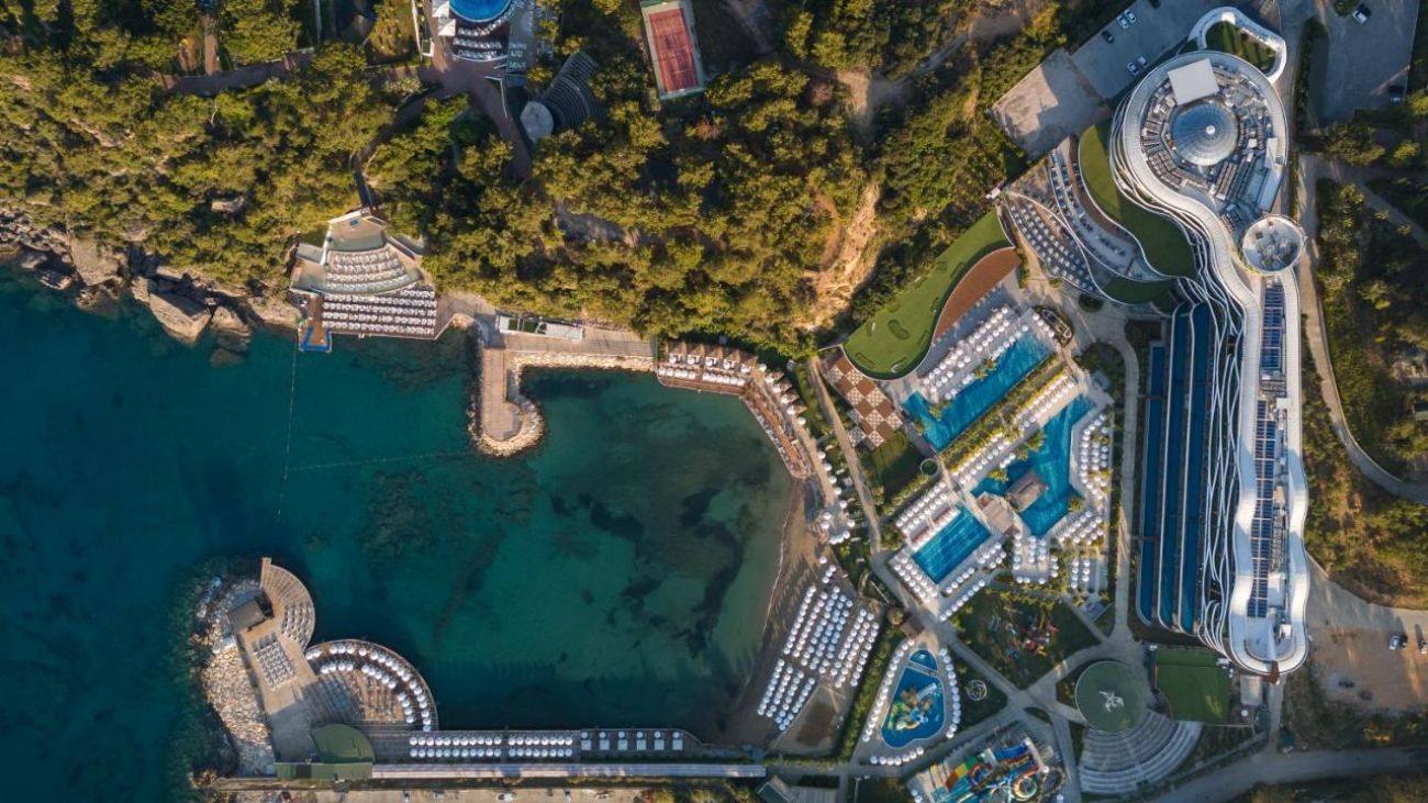 Има романтични и премиум елементи — swim-up стаи, VIP кабани, гурме ресторанти.