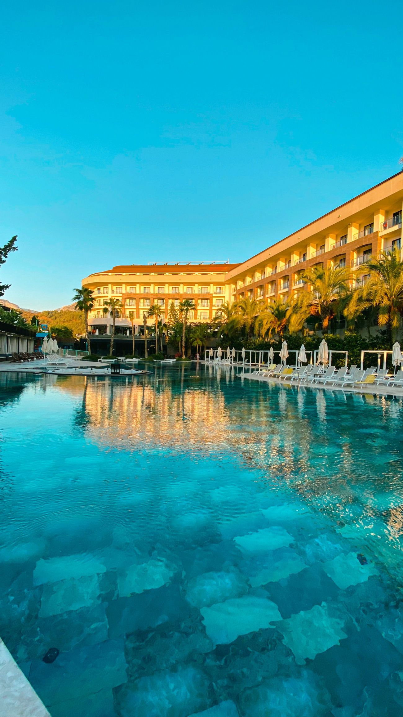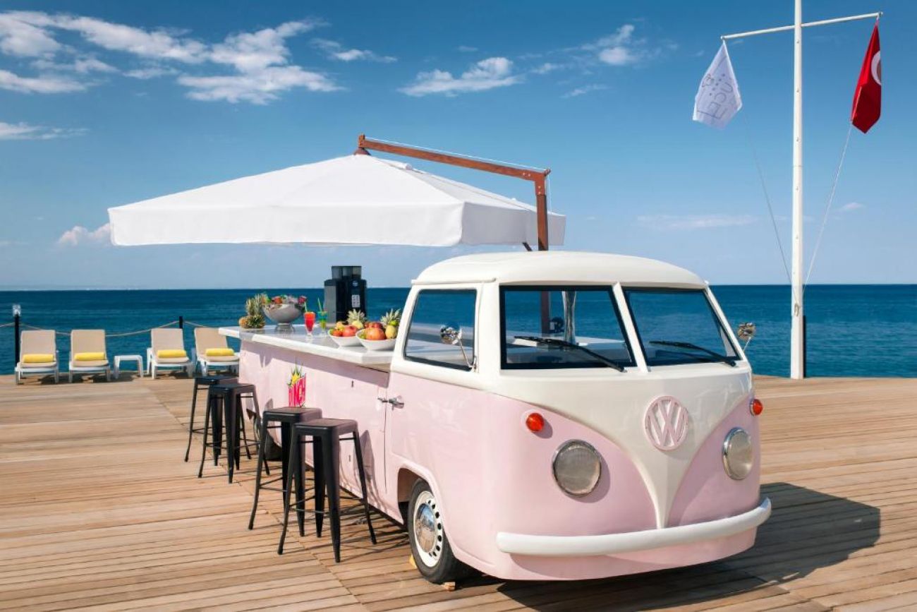 Основен ресторант, 5 а-ла-карт ресторанта (рибен, турски, италиански, барбекю, стек – 1 безплатно посещение при минимум 7 нощувки), сладкарница, 7 бара, открит и закрит (отопляем) басейн, закрит (отопляем) басейн с джакузи, аквапарк, амфитеатър, СПА център, дискотека, магазини, конферентна зала.