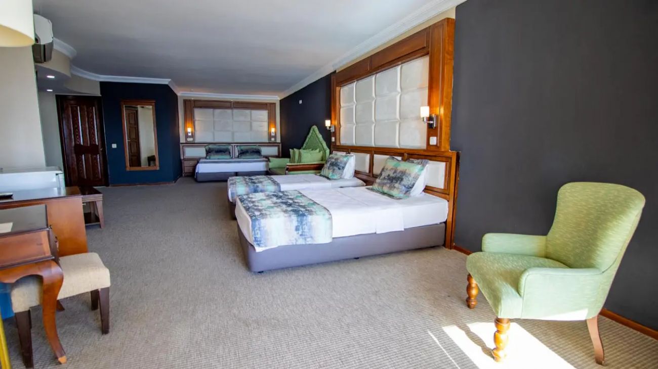 Хотелът разполага с общо 97 стандартни стаи (27 кв.м), от които 16 без балкон, 18 с изглед градина, 62 с изглед море. Всички оборудвани с климатик, телевизор, телефон, баня с душ или вана, сешоар, минибар (платен), сейф (платен). Почистване на стаите – всеки ден, смяна на бельото и кърпите – 2 пъти в седмицата.