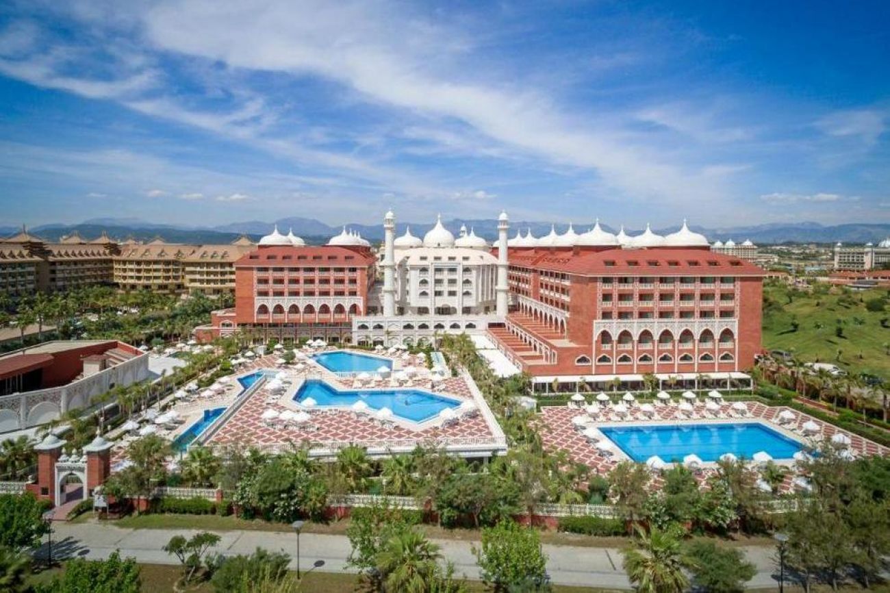 Разположен на самия бряг на морето, Royal Taj Mahal Hotel се отличава с впечатляваща архитектура. Центърът на град Сиде е на 7,5 километра от хотела, а летище Анталия отстои на 60 километра. Построен е през 2015 г. с обща площ от 40 000 кв.м.
