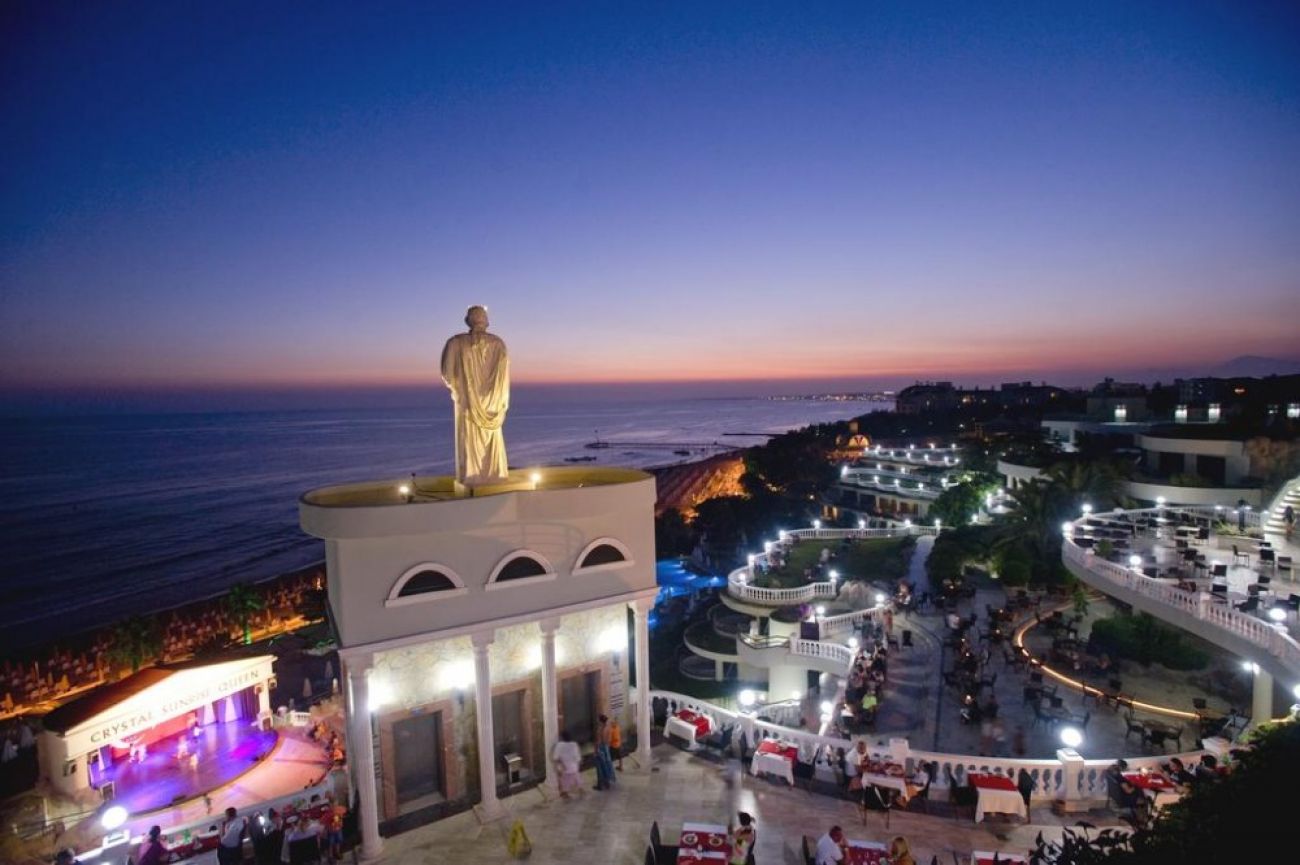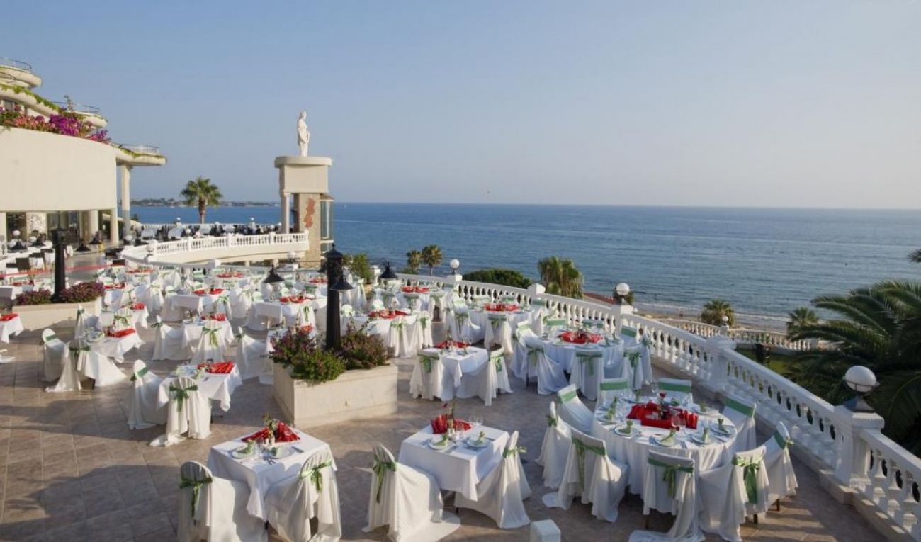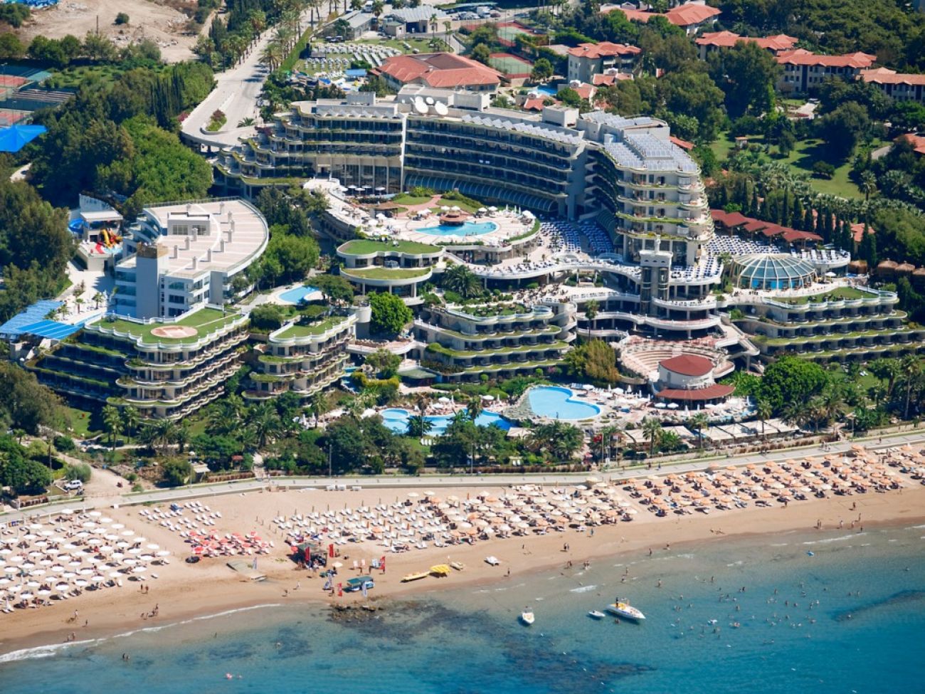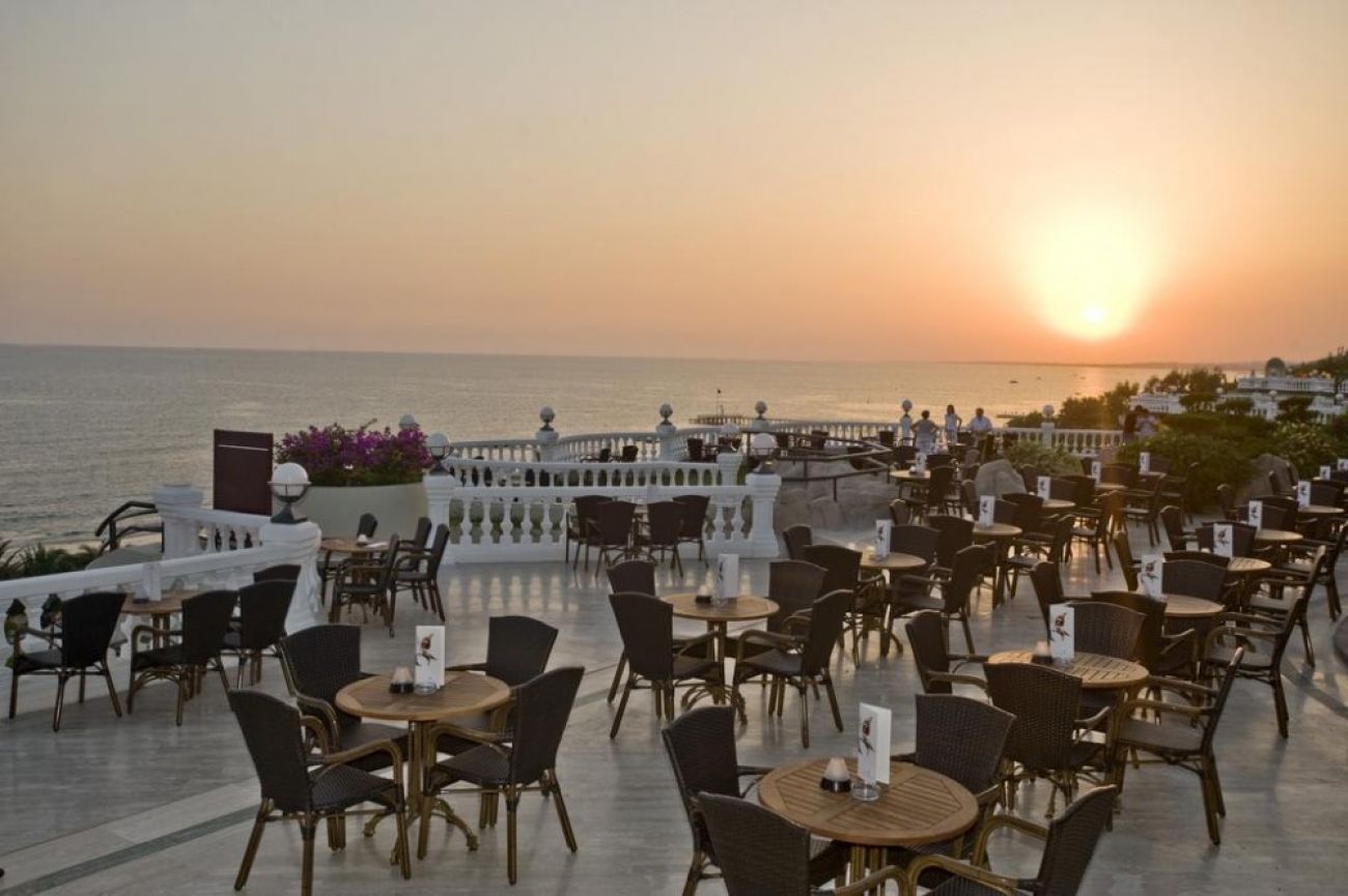 0сновен ресторант, диетично меню, вегетарианско меню, 4 a - лa - карт ресторанта (турски, рибен, италиански, мексикански, с предварителна резервация, за едноседмичен престой посещението на два ресторанта 1 път – безплатно), 9 бара, 6 открити басейна, закрит басейн, 3 водни пързалки, кино, лекарски кабинет, СПА център (платено), фризьорски салон (платено), магазини, пералня, химическо чистене, 3 конферентна зала , футболно поле на плажа (25х30) За децата: детски бюфет, 2 детски басейна, 2 детски водни пързалки, мини-клуб (4-12 год.), бебефон (платено), нагревател за бутилки (платено), блендер (платено), детска количка (с резервация, платено) детегледачка (платено). Безплатни услуги: турска баня, сауна, парна баня, фитнес, аеробика, аквааеробика, плажен волейбол, мини-футбол, скуош, боча, 6 тенис корта в твърдо покритие, тенис на маса, дартс, анимационна програма музика на живо (2 пъти седмично), дискотека, безжичен интернет (на цялата територия). Платени услуги: масаж, боулинг (2 пътеки),билярд, наем на тенис, ракети и топки, осветление на тенис ракети и топки, уроци по тенис, игрални автомати, водни спортове, уиндсърфинг (с лиценз), интернет - кафе, фризьор, СПА-център.