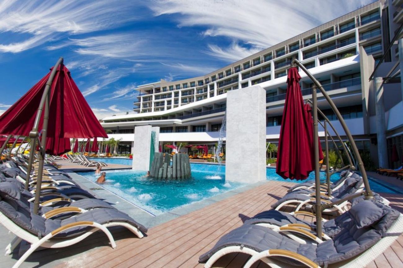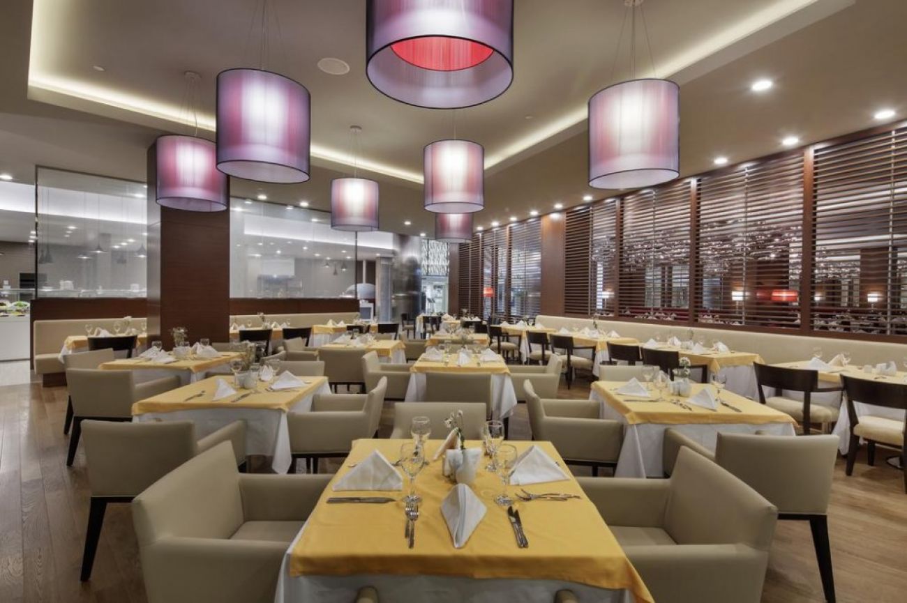 На територията: основен ресторант, 3 A'la Carte ресторанта, 4 бара, открит и закрит басейн, фитнес, сауна, турска баня, тенис на маса, билярд, волейбол, дартс, водни пързалки, амфитеатър, водни спортове, 3 конферентни зали, интернет – кафе, магазини, СПА център, наем на автомобили. За децата: 2 детски басейна (открит и закрит), 2 водни пързалки, мини клуб. Wif-интернет - срещу заплащане