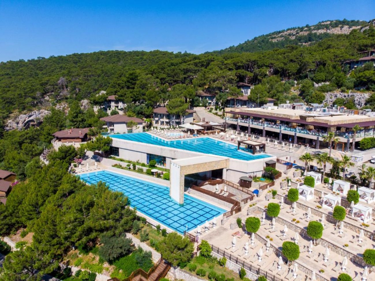 Основен ресторант, 2 а-ла-карт ресторанта (платени), 5 бара, 3 открити и 1 закрит басейн, СПА център, магазини, паркинг.