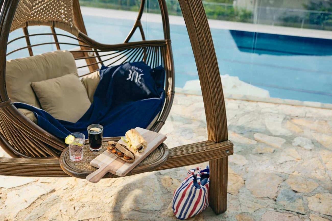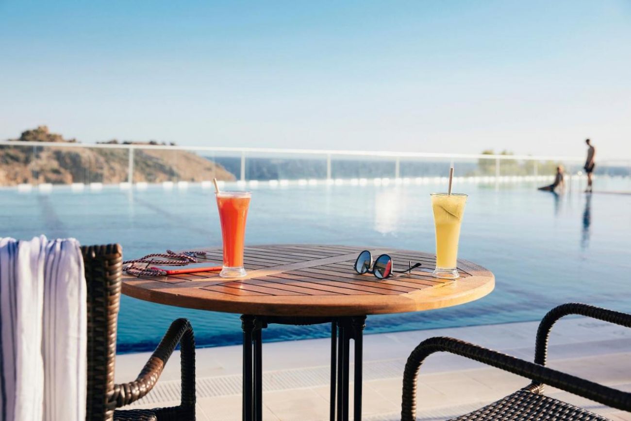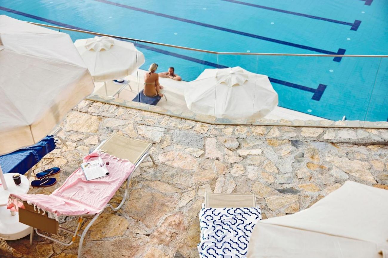 Собствен, пясъчен плаж с ширина 180 м, удостоен със син флаг. Чадъри и шезлонги на плажа и при басейна - безплатно.