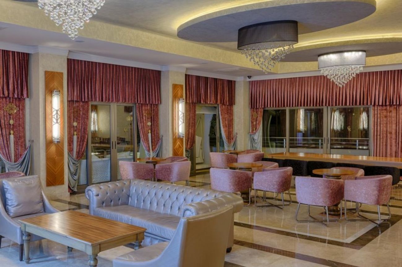 Основен ресторант, а-ла-карт ресторант (с предварителна резервация), 3 бара, открит и закрит басейн, водни пързалки, магазини, СПА център, паркинг. За децата: открит и закрит детски басейн, водни пързалки, детска площадка, мини клуб (4–12 г.) Безплатни услуги: Сауна, турска баня, фитнес, аеробика, тенис на маса, анимационна програма, интернет (на лоби). Платени услуги: СПА център, масаж, пилинг, билярд, сейф (2 евро на ден) магазини, химическо чистене, моторни водни спортове. ПЛАЖ: Собствен, пясъчен – чадъри и шезлонги на плажа и при басейна – безплатно, плажни кърпи - безплатно.