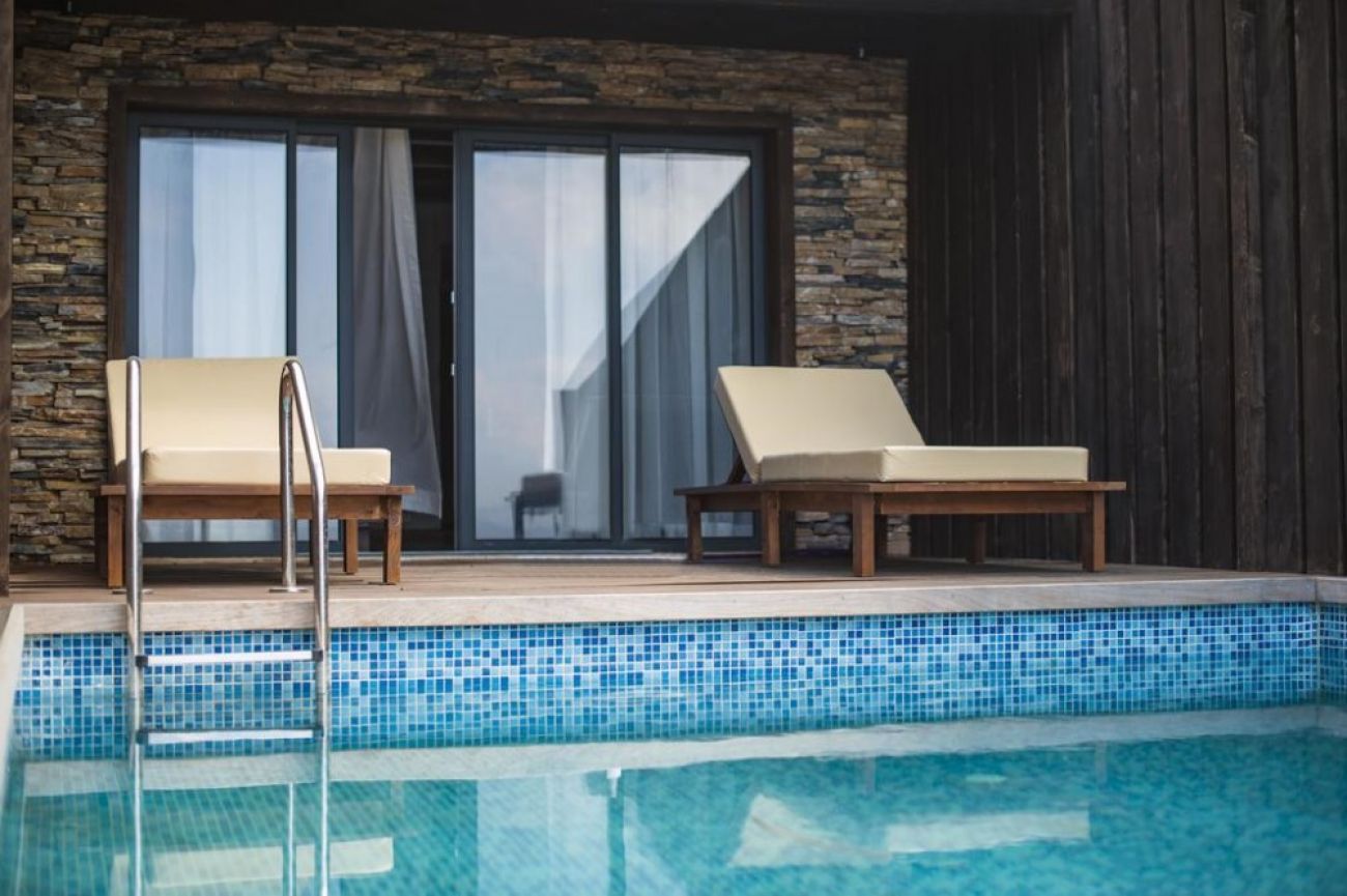 Собствен, пясъчен. Хавлии, шезлонги и чадъри при басейна - безплатно. На плажа - шезлонги и чадъри - безплатно, хавлии - платено. Безплатен шатъл до плажа.
