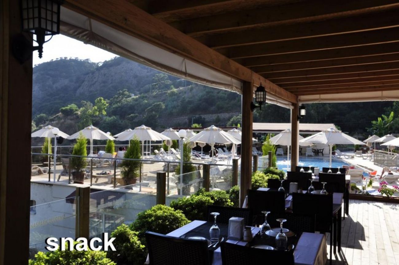 Основен ресторант, а-ла карт ресторант (с предварителна резервация), голяма градина, открит басейн,1 детски басейн, 3 бара (бар в градината, бар на басейна, снек бар) За децата: детски басейн, детска площадка (4-12г.) от 10:00-12:00ч. и от 14:00 до 18:00 часа. Безплатни услуги: Wi-Fi интернет (в общите части и стаите), сейф, анимация, дартс, шах, бoча, мини футбол, волейбол, тенис на маса, водна топка, водна гимнастика, трансфер с шатъл до плажа (10-16:30ч), паркинг. Платени услуги: фризьор, лекар, пране, гладене, факс услуги, телефон, мини маркет, водни спортове, рент-а-кар.
