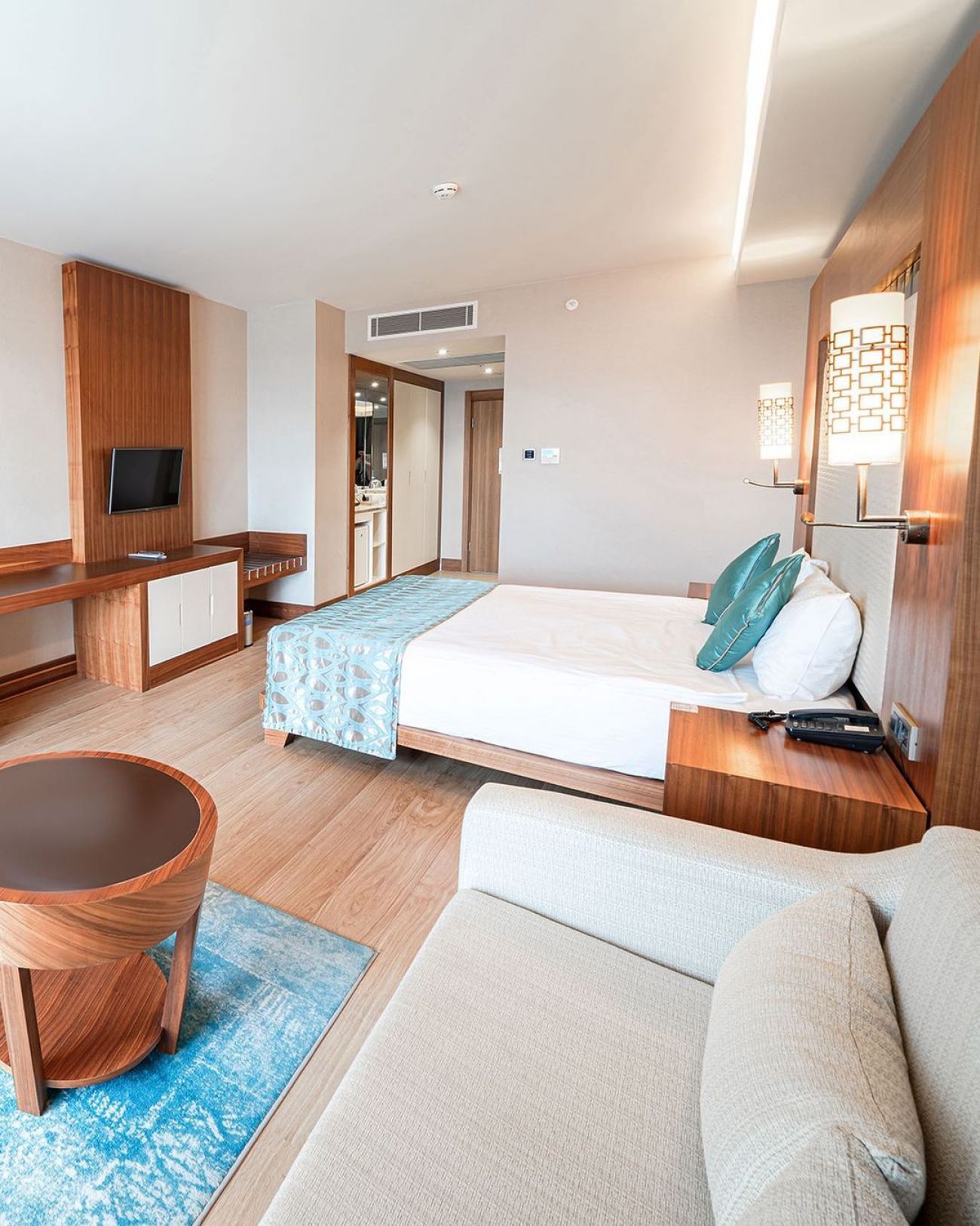 Хотелът разполога с общо 265 стаи, разположени в 4 блока: Superior Room (34 м²), Junior Suite Room (1 спалня, хол - 53 м²), Family Suite Room (2 спални, хол - 71 м²). Всички стаи са оборудвани с климатик, телевизор, телефон, баня с душ или вана, сешоар, сет за чай/кафе, минибар (безплатно еднократно зареждане с вода и безалкохолни напитки при настаняване), сейф (безплатен), балкон, Wi-Fi. Почистване на стаите – всеки ден, смяна на спалното бельо – 2 пъти в седмицата, смяна на кърпите – 3 пъти в седмицата.
