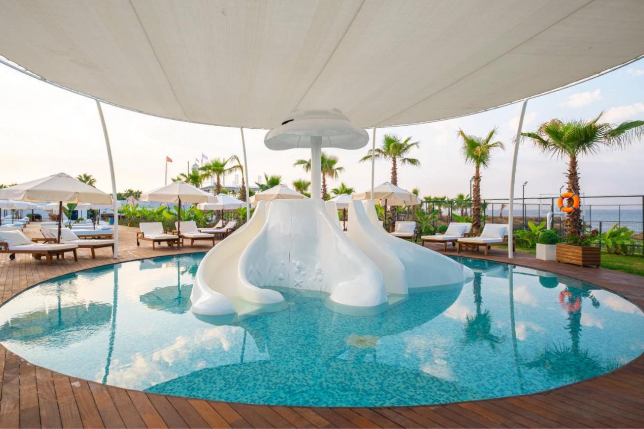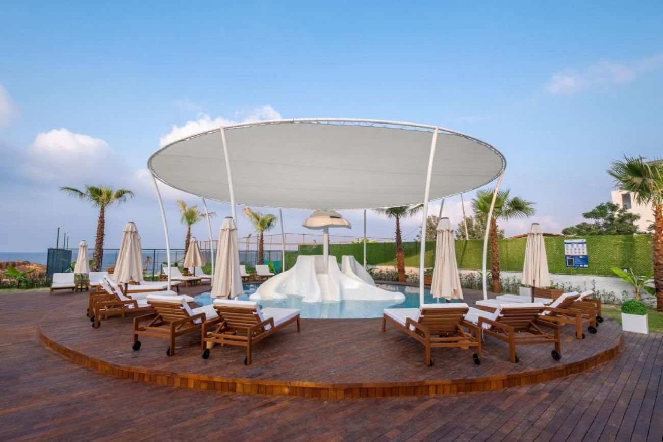 Намира се на 104 км от летище Анталия, на 113 км oт центъра на Анталия, на 23 км от центъра на Алания, на брега на морето. Построен 2022 г., на обща площ от 25 000 м2.