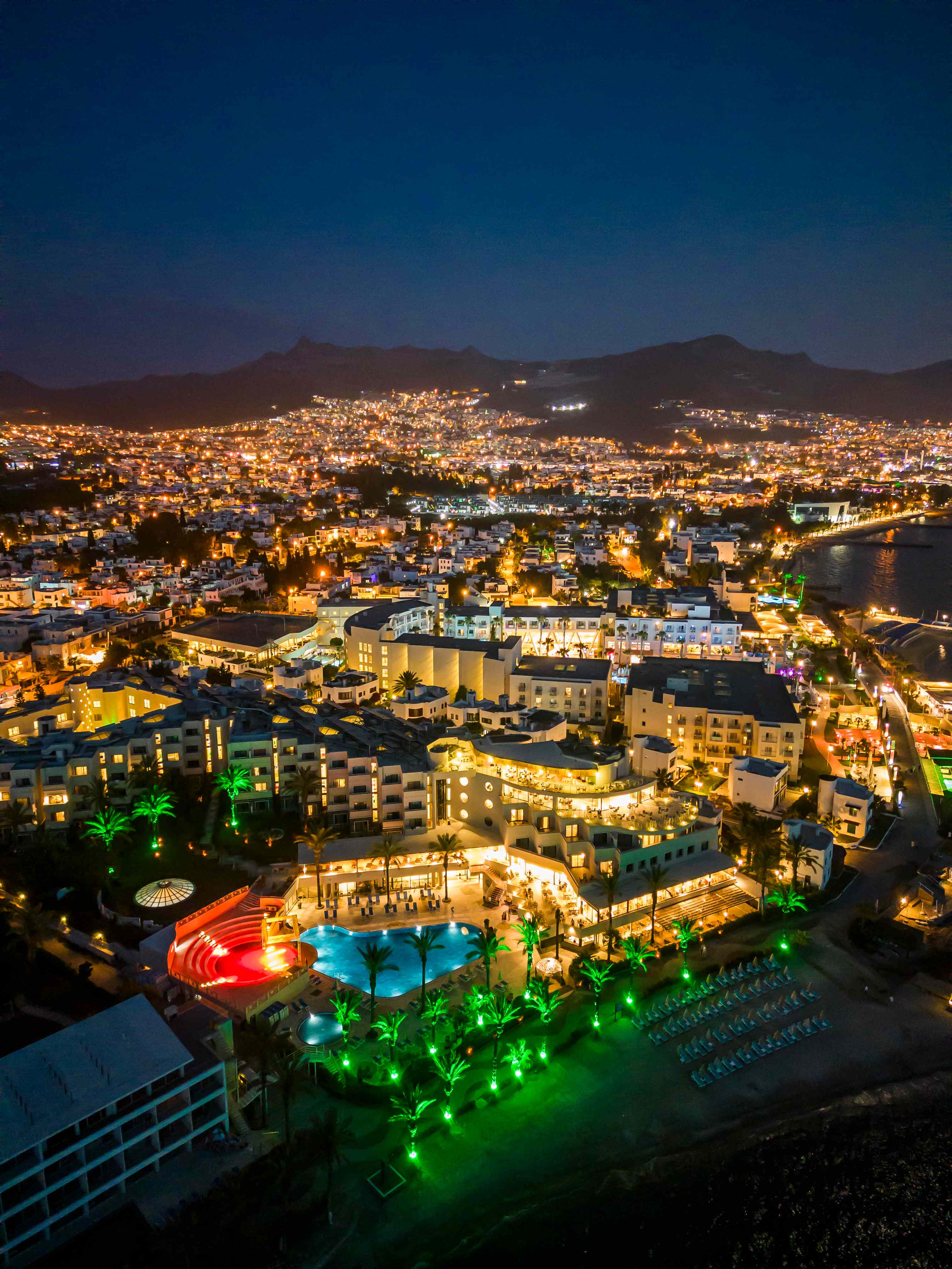 Хотелът е разположен на 50 км от летище Милас, на 20 км от центъра на Бодрум, в района Тургутрейс, на 1 км от центъра на Тургутрейс, на брега на морето. Разполага с площ от 30.000 m², последно реновиран изцяло през 2022/3 година.