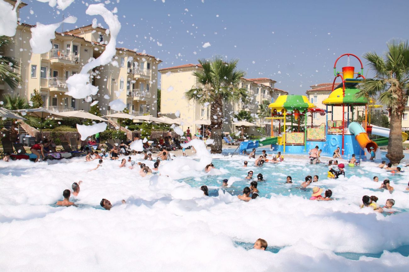 Основен ресторант, 2 бара, открит басейн, аквапарк, СПА център, телевизионна зала, магазини, конферентна зала, паркинг.