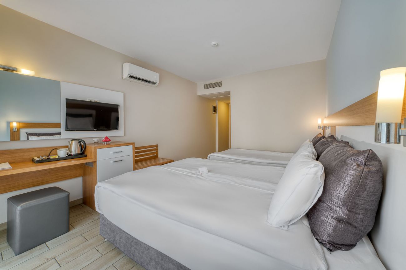 Всички стаи са оборудвани с климатик, телевизор, телефон, баня с душ, сешоар, сет за чай/кафе, минибар (безплатен), сейф (платен), балкон.
