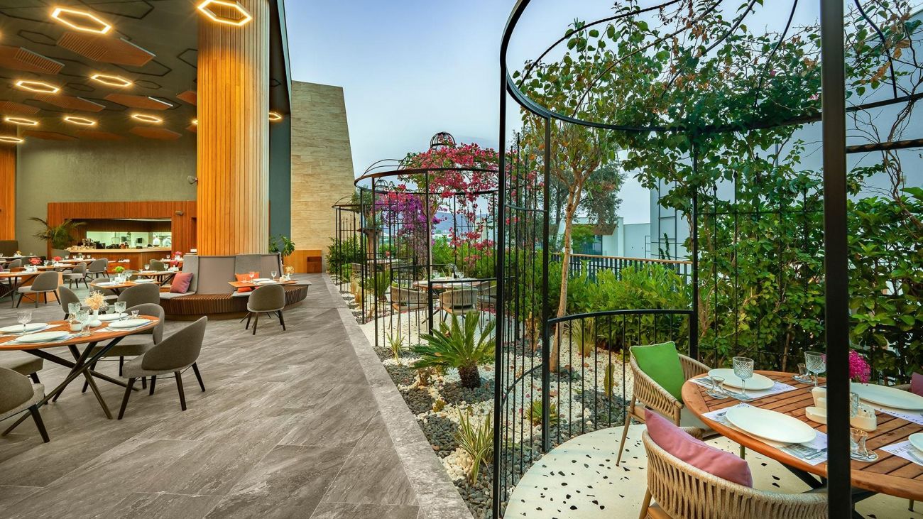 Основен ресторант, 3 а- ла- карт ресторанта/италиански, турски и рибен/, 4 бара, дискотека, открит и закрит басейн, СПА център, хамам, сауна, фитнес, масажи, 3 водни пързалки, магазини, паркинг. За децата: Детско меню, детски басейн, водни пързалки, детска площадка, мини дискотека, бебешко креватче, бебешки столчета, бебефон и други бебешки приспособления/със предварителна заявка - безплатно/. Безплатни услуги: Сауна, турска баня, фитнес, аеробика, тенис корт, наем на ракети и топки за тенис, волейбол, кино, немоторни водни спортове, кану, водно колело, анимация, интернет. Платени услуги: СПА център, масажи, фризьор, магазини, билярд, боулинг, моторни водни спортове.