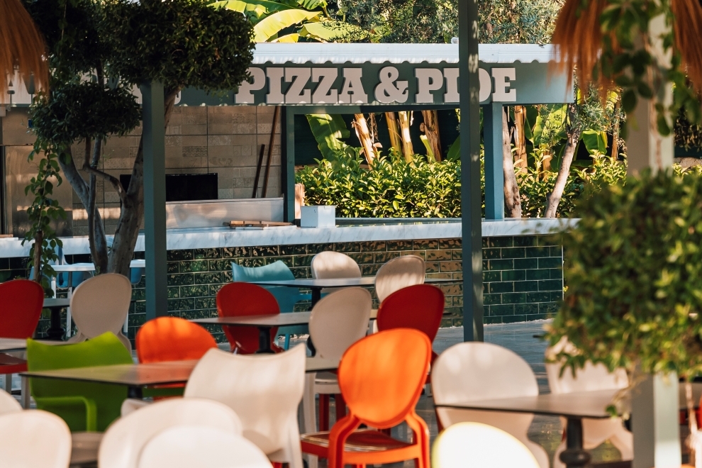 На разположение на гостите са основен ресторант и 2 а`ла карт ресторанта: рибен и стек ресторант (срещу заплащане, с предварителна резервация). В 5-те бара се предлагат разнообразни напитки. Има също кафетерия и гюзлеме кът.