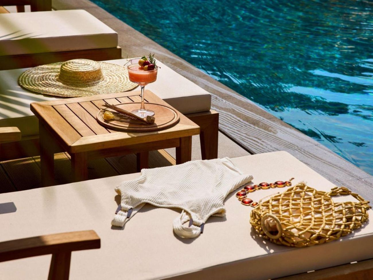 Собствен, пясъчно-чакълест (препоръчва се носене на аква обувки). Чадъри, шезлонги и матраци на плажа и при басейна – безплатно. Плажни кърпи – безплатно.