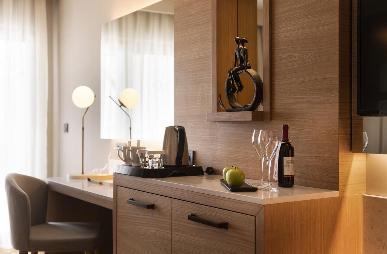 Всички стаи са оборудвани с климатик, телевизор, телефон, баня с душ, сешоар, чехли, сет за чай/кафе, еспресо машина, минибар (безплатен), сейф (безплатен), 4 таблета (ежедневно - безплатно), ютия и дъска за гладене (за целия престой - при поискване).