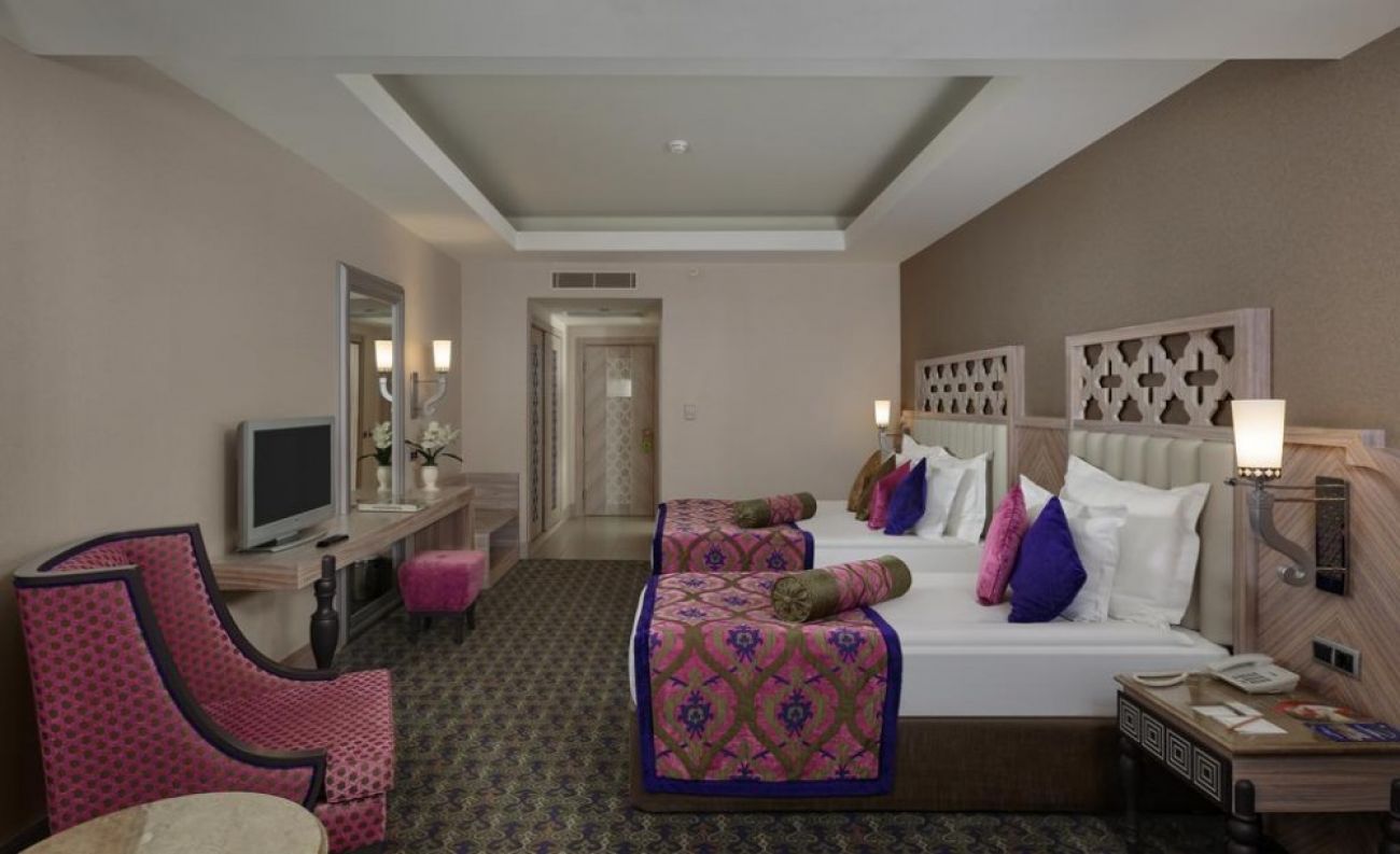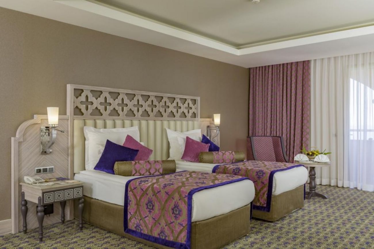 Хотелът разполага с общо 579 стаи, разположени в 6-етажна основна сградa Main building, от които 395 Superior Standard Room (изглед суша, страничен или фронтален изглед море, 40-46 м2), 5 Superior Standard Handicapped room (пригодени за хора с ограничена подвижност - 30 м2), 46 Family Connection Room (2 спални със свързваща врата, двойно и две единични легла, изглед суша или море - 72 м2), 48 Duplex Family Room (2 спални разположени на два етажа, двойно и две единични легла, 2 бани, изглед суша или море - 80 м2), 60 Alhambra Suite (спалня, кът за сядане, изглед море - 63 м2), 22 Junior Suite (спалня с джакузи, всекидневна, 2 бани, изглед море - 70 м2), 3 King Suite (2 спални – едната от които с джакузи, всекидневна, 2 бани - 137 м2).