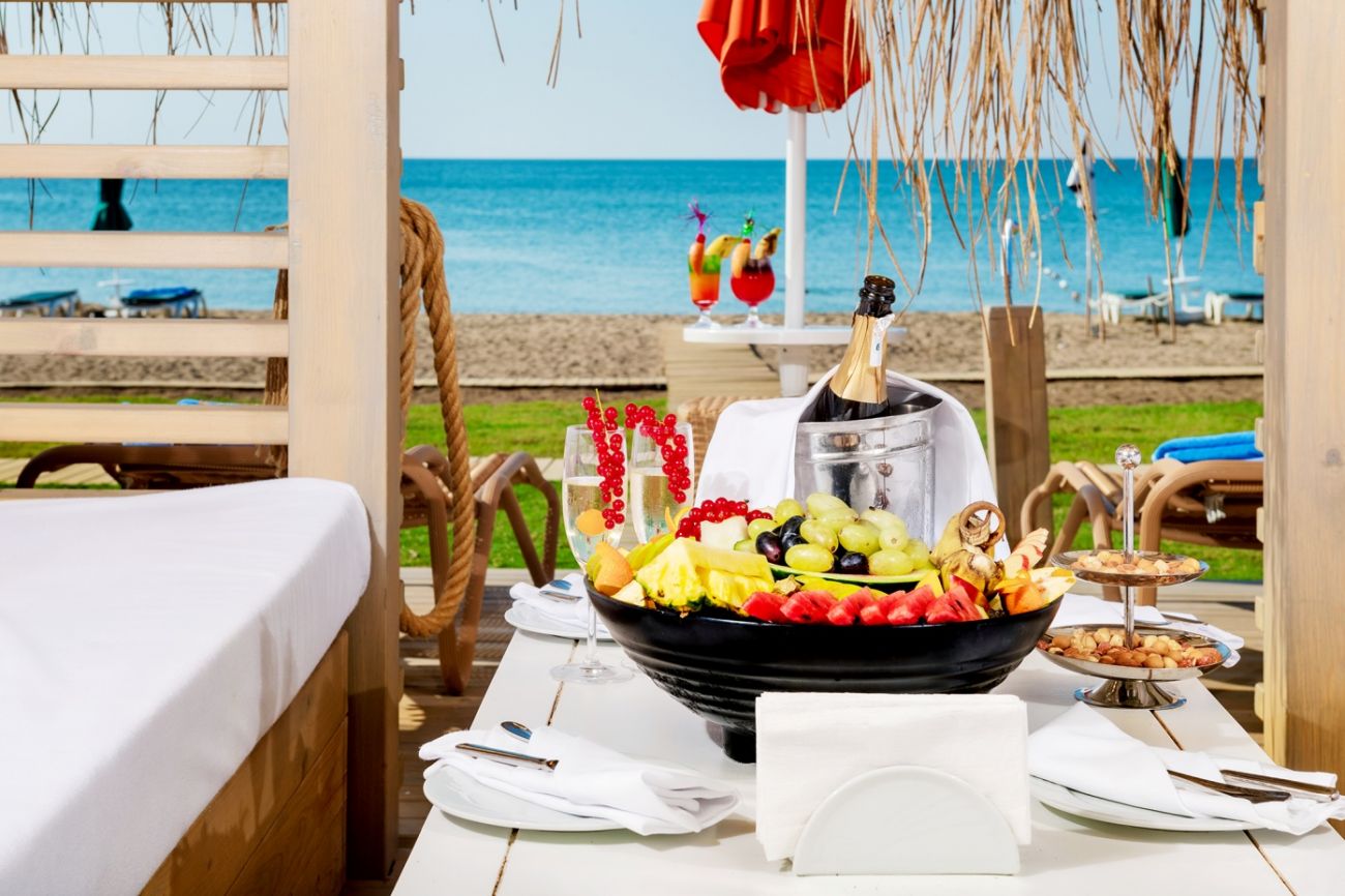 Безплатни услуги: Сауна, турска баня, парна баня, солна стая, фитнес, тенис на маса, плажен волейбол, баскетбол, аеробика, йога, водна гимнастика, тематични партита, жива музика, анимация, настолни игри, Wi-Fi (на цялата територия).
