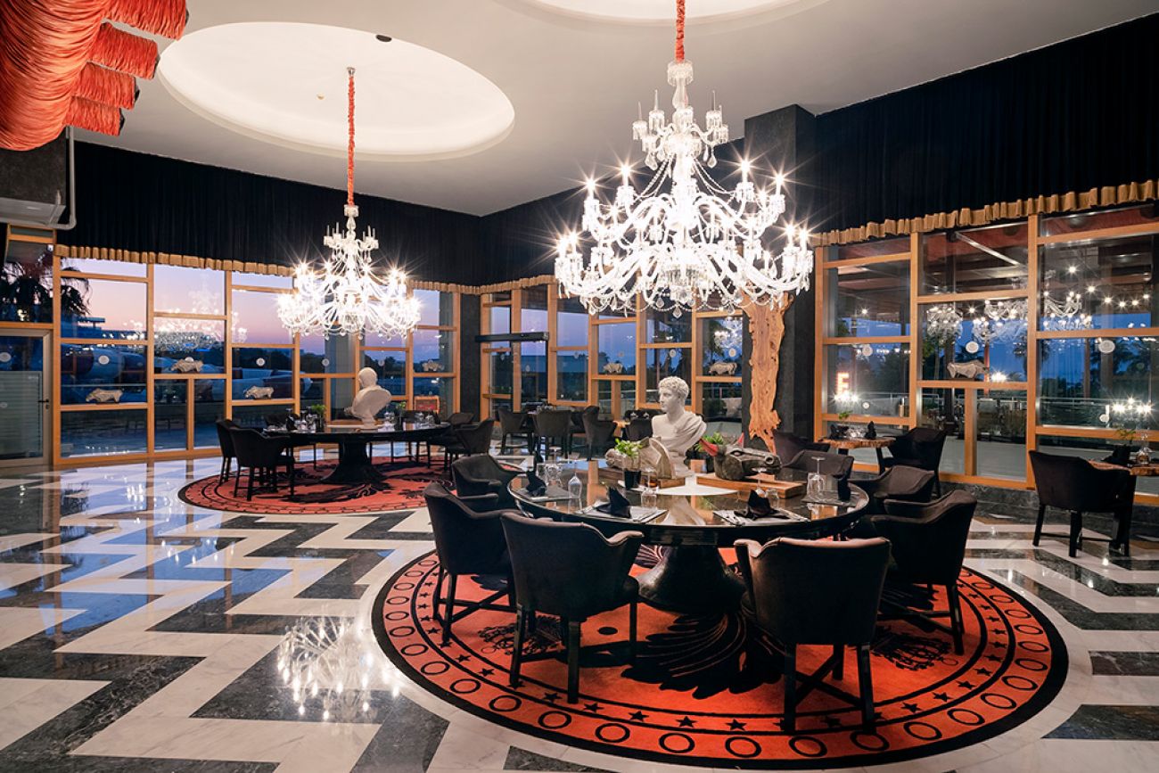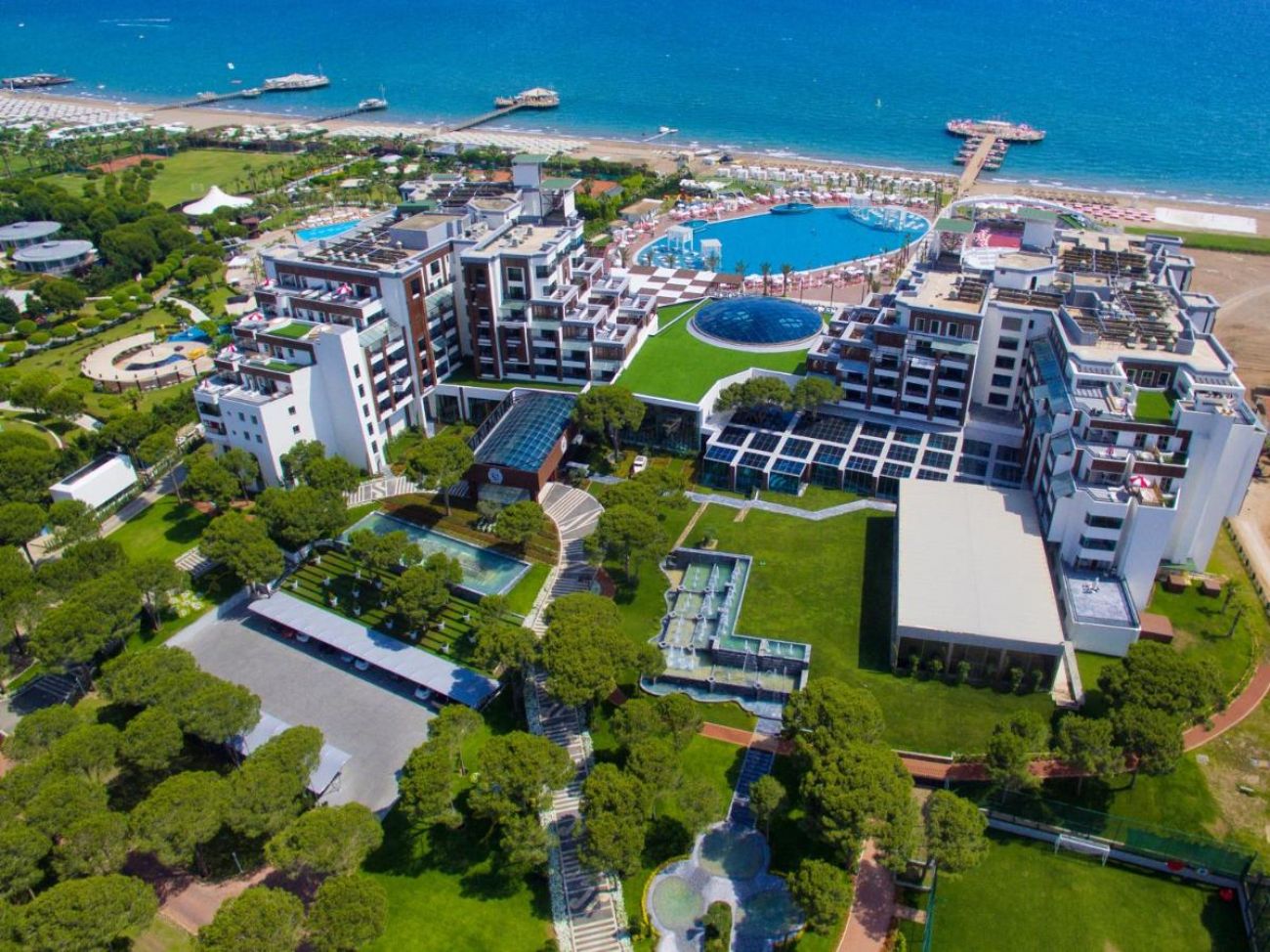 Основен ресторант, ресторант към клубните стаи, 4 а-ла-карт ресторанта (рибен, италиански, барбекю – 1 безплатно посещение на 1 от ресторантите при минимум 7 нощувки), 24/7 интернационален ресторант а-ла-карт, суши бар, сладкарница, снек ресторант, гьозлеме, 11 бара, 4 открити и 1 закрит басейн, аквапарк, увеселителен парк, кино, амфитеатър, жива музика, специални шоу програми, дискотека, СПА център, магазини, 5 конферентни зали, паркинг.