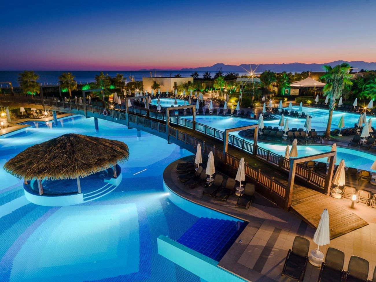 Основен ресторант, а-ла-карт ресторант(италиански, интернационален)- съгласно концепцията на хотела, 3 бара, витамин бар, диско бар, външен и вътрешен басейн, аквапарк, водни спортове, СПА център, сауна, хамам, фитнес, билярд, кино салон, тенис на маса, баскетбол, анимация, магазини, WIFI- съгласно концепцията на хотела.