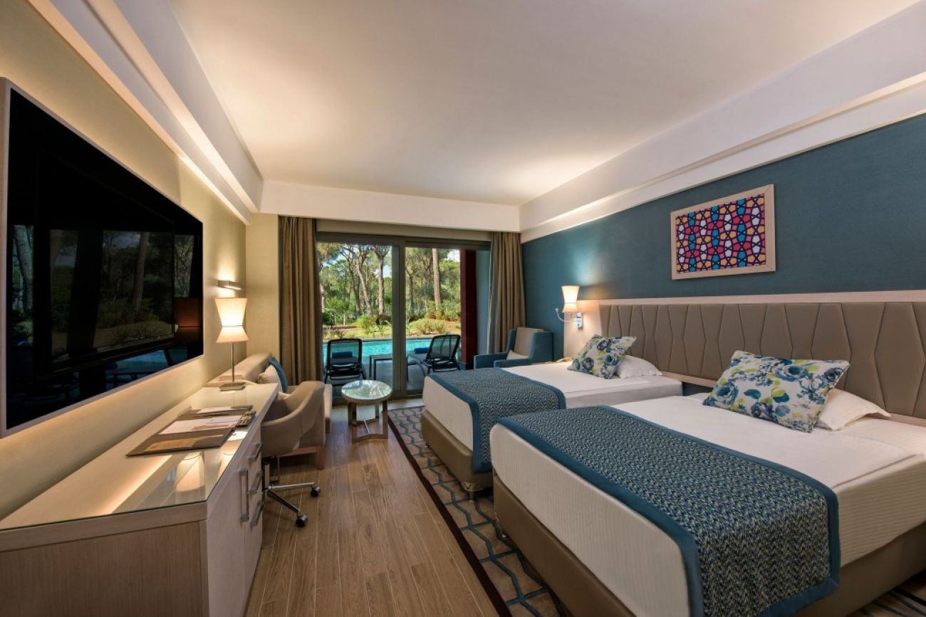 Стаи в Deluxe Building:235 standard room (гледка градина, 36 м2 - 42 м2); 29 family room (гледка градина, две спални с врата, 2 бани с душ, балкон, 84 м2);