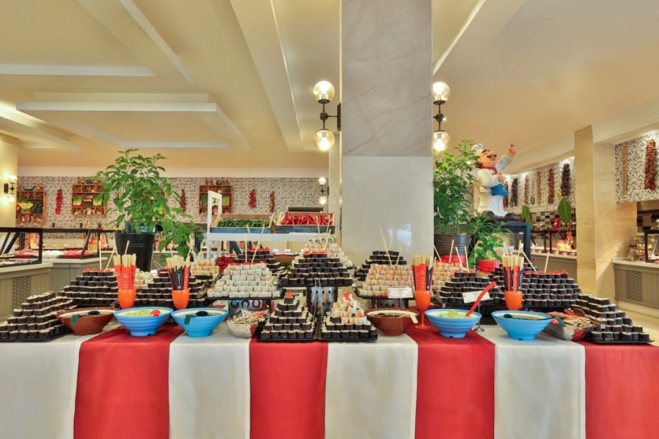 Това е голям хотел на първа брегова линия в Кемер. На територията има открити и закрити басейни за възрастни и деца, аквапарк, фитнес зала, спа център, тенис корт и търговски център с различни магазини. Хотелът разполага с много ресторанти, включително а ла карт, както и голям избор от барове - край басейна, във фоайето, на плажа, диско бар и др. Има мини-клуб за деца, детска площадка, анимационни мероприятия и мини-дискотеки. Стаите в хотела са оборудвани с всички необходими удобства и имат изглед към околността.