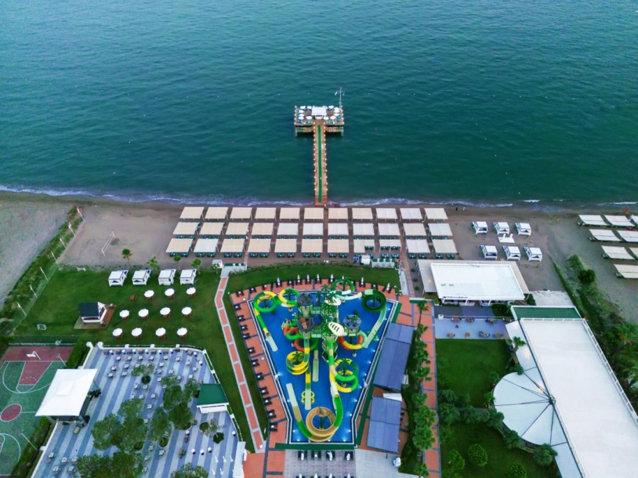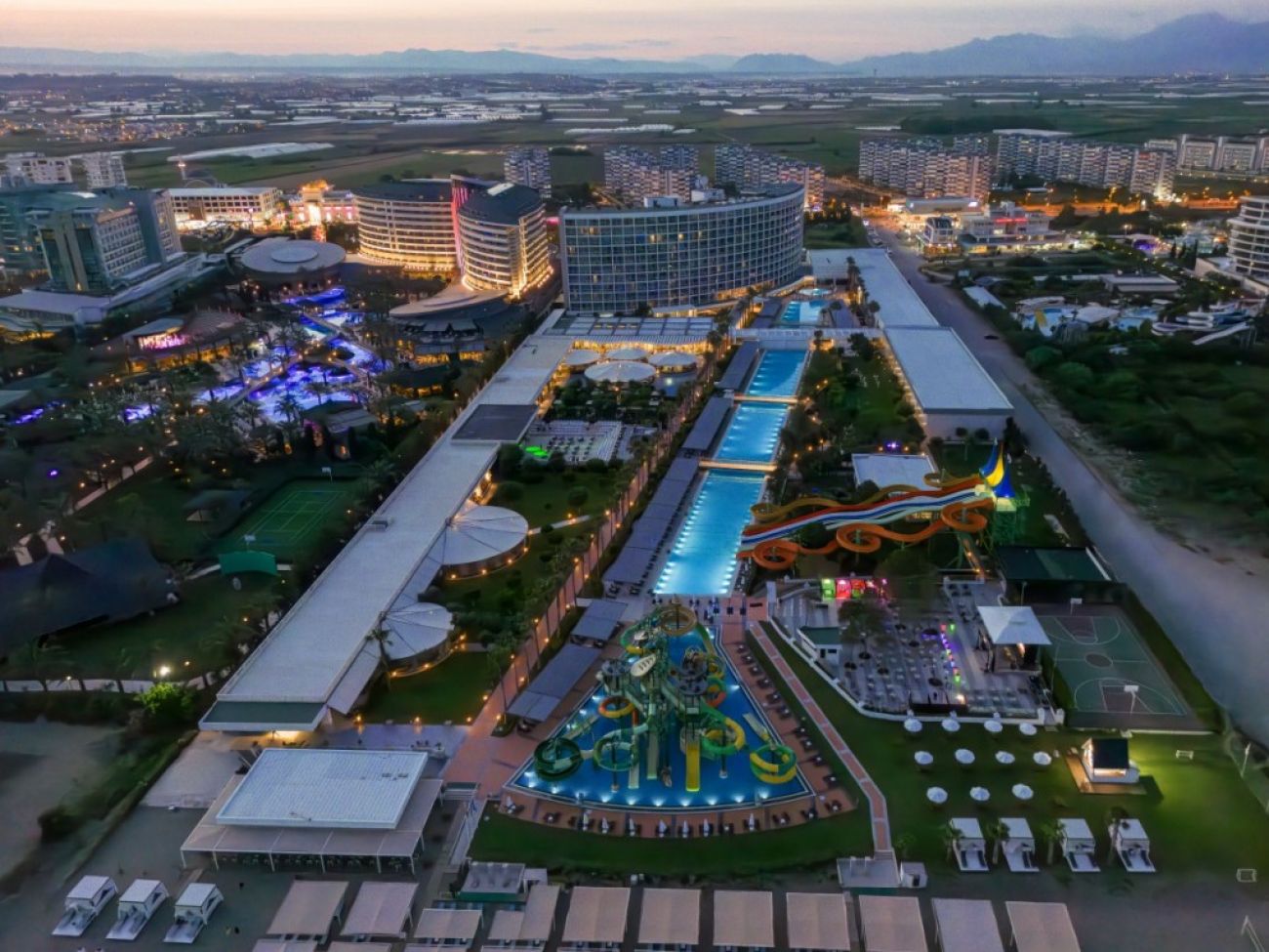 Хотелът се намира на известния бряг Лара. Най-близките магазини и ресторанти са само на 200 метра. Има открит плувен басейн с водни пързалки и обзаведена слънчева тераса. Основният ресторант предлага бюфет, а ла карт ресторанти: турски, италиански и рибен. Има няколко бара и дискотека на откритата тераса. Разполага с фитнес център с добре оборудвана фитнес зала, СПА център и масажни услуги. Има мини-клуб за деца с разнообразни анимационни програми и мини-дискотека. Осигурен е безплатен паркинг.