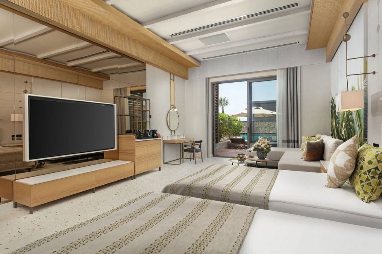 В стаите: Всяка стая разполага с баня с душ, сешоар, халати, чехли и тоалетни принадлежности. Стаята разполага още с климатик, телевизор, телефон и безплатен Wi-Fi. На гостите се предоставят плажна чанта, ютия (при поискване), меню с възглавници, минибар, сейф и удобства за приготвяне на чай и кафе. Можете да се насладите на гледката от балкона или терасата.