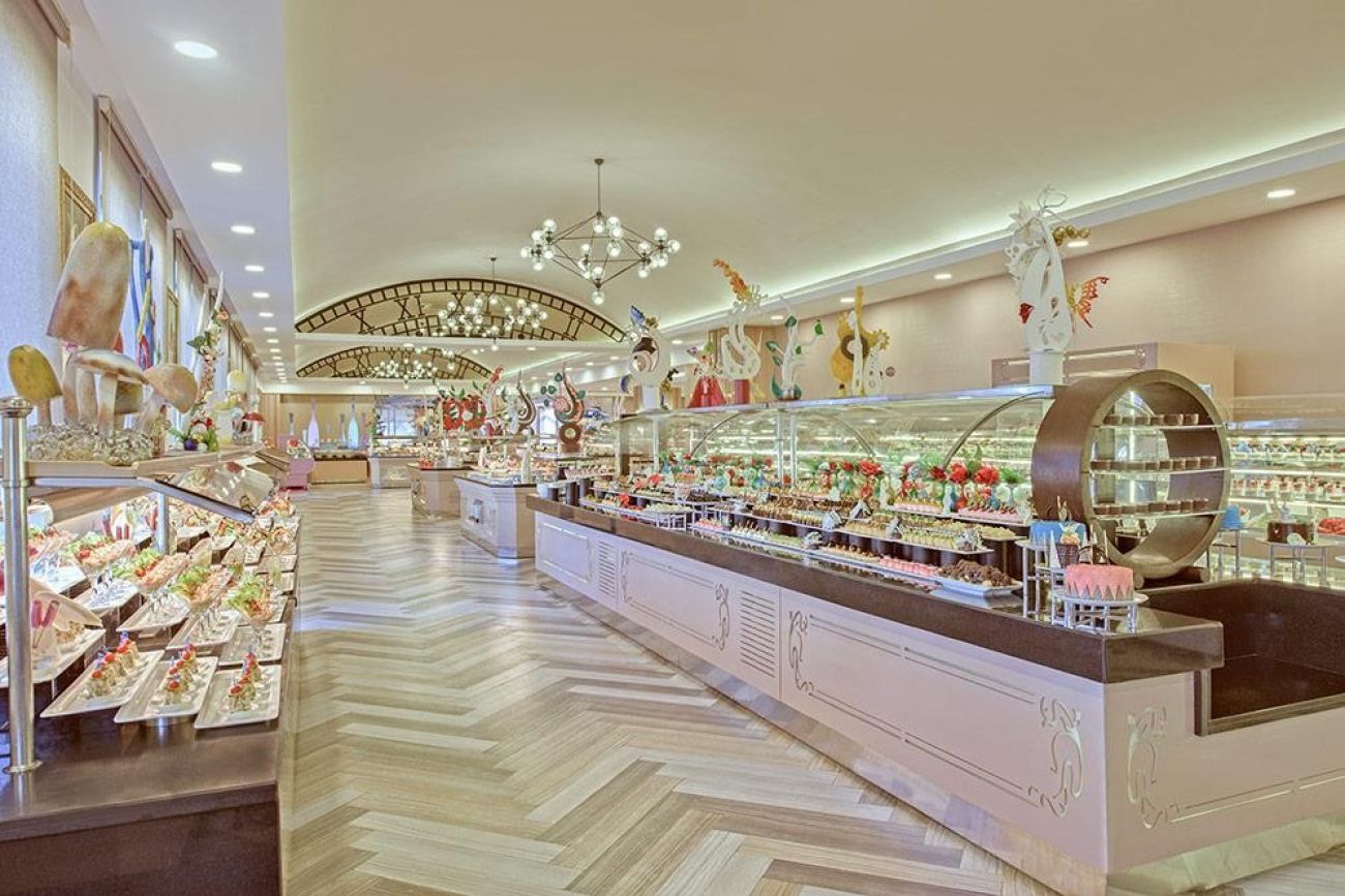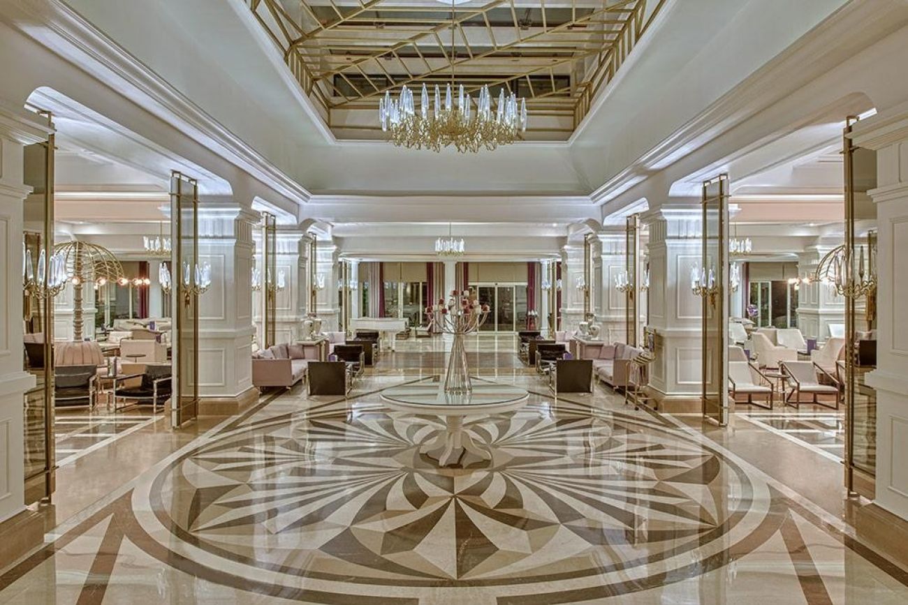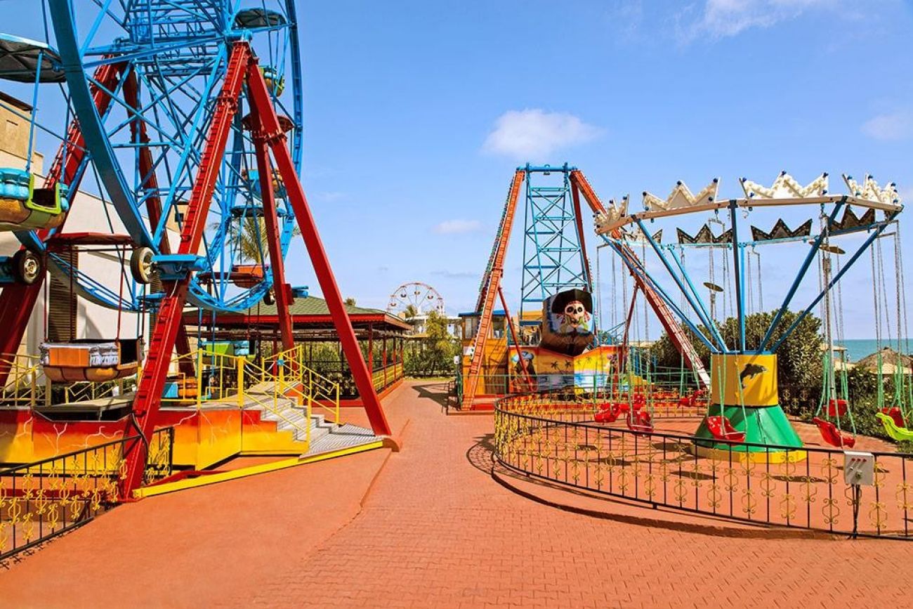 На територията на хотела: Хотелът предлага Wi-Fi във фоайето, обмяна на валута, конферентни зали (срещу заплащане), безплатен паркинг, лекарски услуги (срещу заплащане), пране (срещу заплащане), коли под наем (срещу заплащане), козметичен салон (срещу заплащане), амфитеатър и магазини (срещу заплащане). Основният ресторант "Amber" е отворен от 07:00 до 21:00 часа, няколко а ла карт ресторанта предлагат разнообразие от кухни: турска "Ottoman" (19:00–21:30), италианска "Dolche Vita" (19:00–21:30), японска "Teppanyaki" (19:00–21:30), мексиканска "Margarita" (19:00–21:30), китайска "Pekin" (19:00–21:30), риба "Blue Fish" (19:00–21:30) и суши "Dragon" (19:00–21:30). Има още сладкарница (11:00–18:00), лоби бар (08:00–00:00), Sport & Sneck бар (01:00–08:00), витаминен бар (10:00–18:00), снек бар (12:30–15:00), бар на плажа (10:00–00:00) и диско бар (23:00–02:00). За релакс и забавление, гостите могат да се насладят на голям плувен басейн (2321 кв. м), басейн с пързалки (309 кв. м) с четири водни пързалки, релакс басейн (312 кв. м) с отопление през зимата и закрит басейн (135 кв. м) с отопление през зимата.