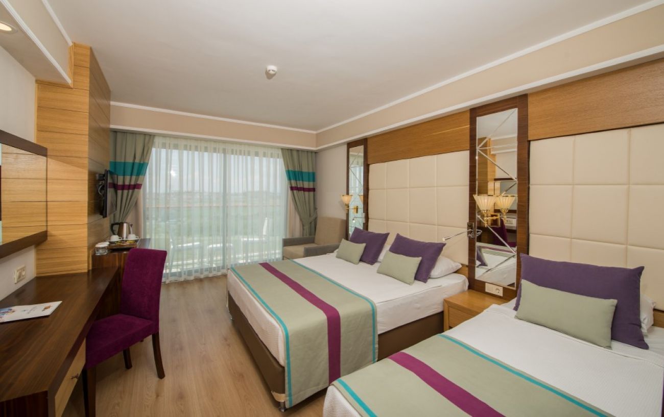 На териорията на хотела: лоби бар, основен ресторант с вътрешен двор, три а ла карт ресторанта (в зависимост от наличността, изисква се резервация) различни барове, магазини, фризьорски салон, закрит плувен басейн ( само през зимния сезон) и модерно оборудвания уелнес център. В цялата територия на хотела е осигурена безжична интернет връзка (WiFi). В градината на хотела - сладководни басейни, гигантски аквапарк с много различни пързалки за малки и големи.